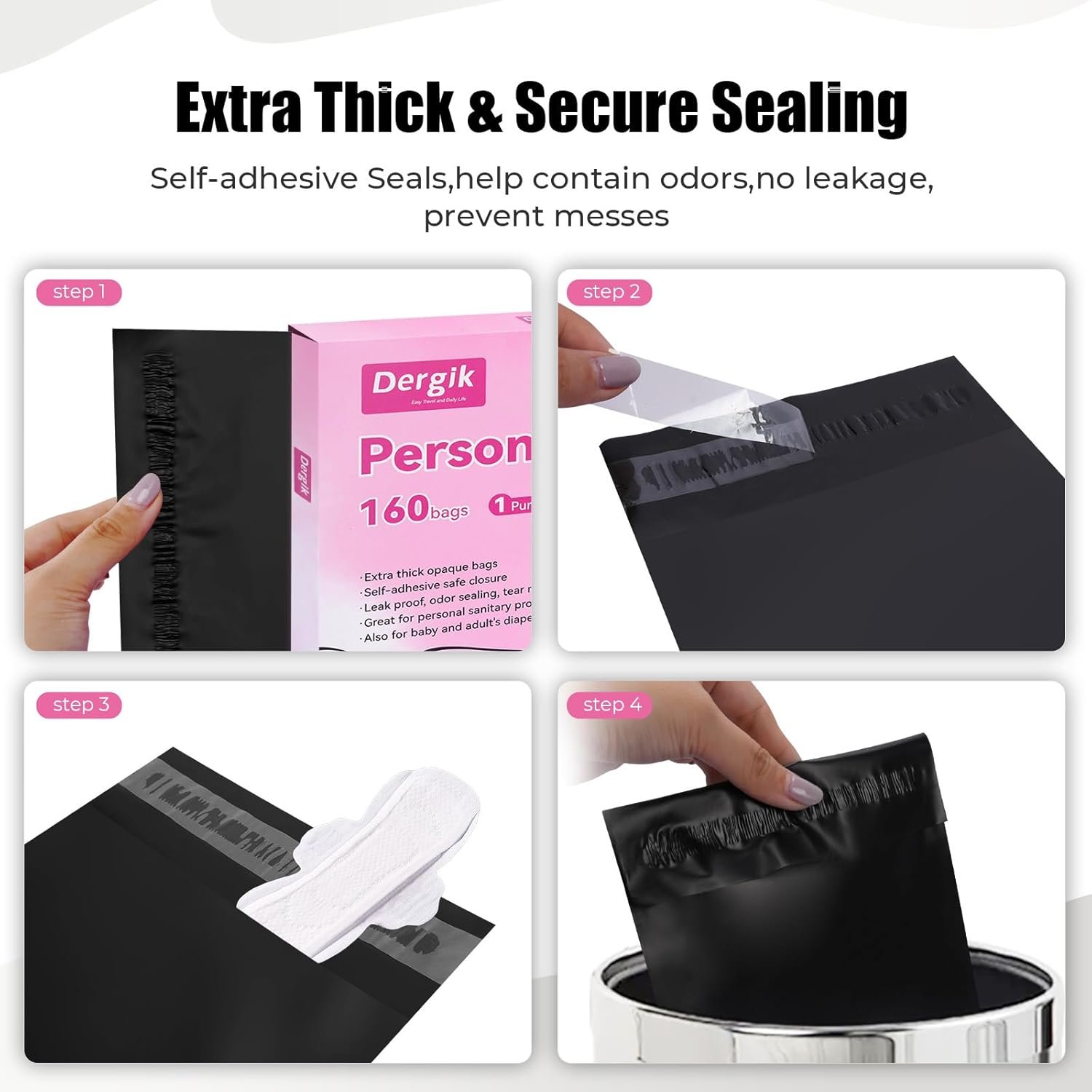 【Opaque】There are 160 counts sanitary disposal trash bags in one pack, extra thick and opaque, enough for the discreet disposal of tampons, ladies hygiene towels for women or girls and other sanitary products. Also very nice for disposable sanitary pads, panty liners, sanitary napkins, feminine hygiene wipes, and other feminine hygiene products.One 160-count box last for many months.