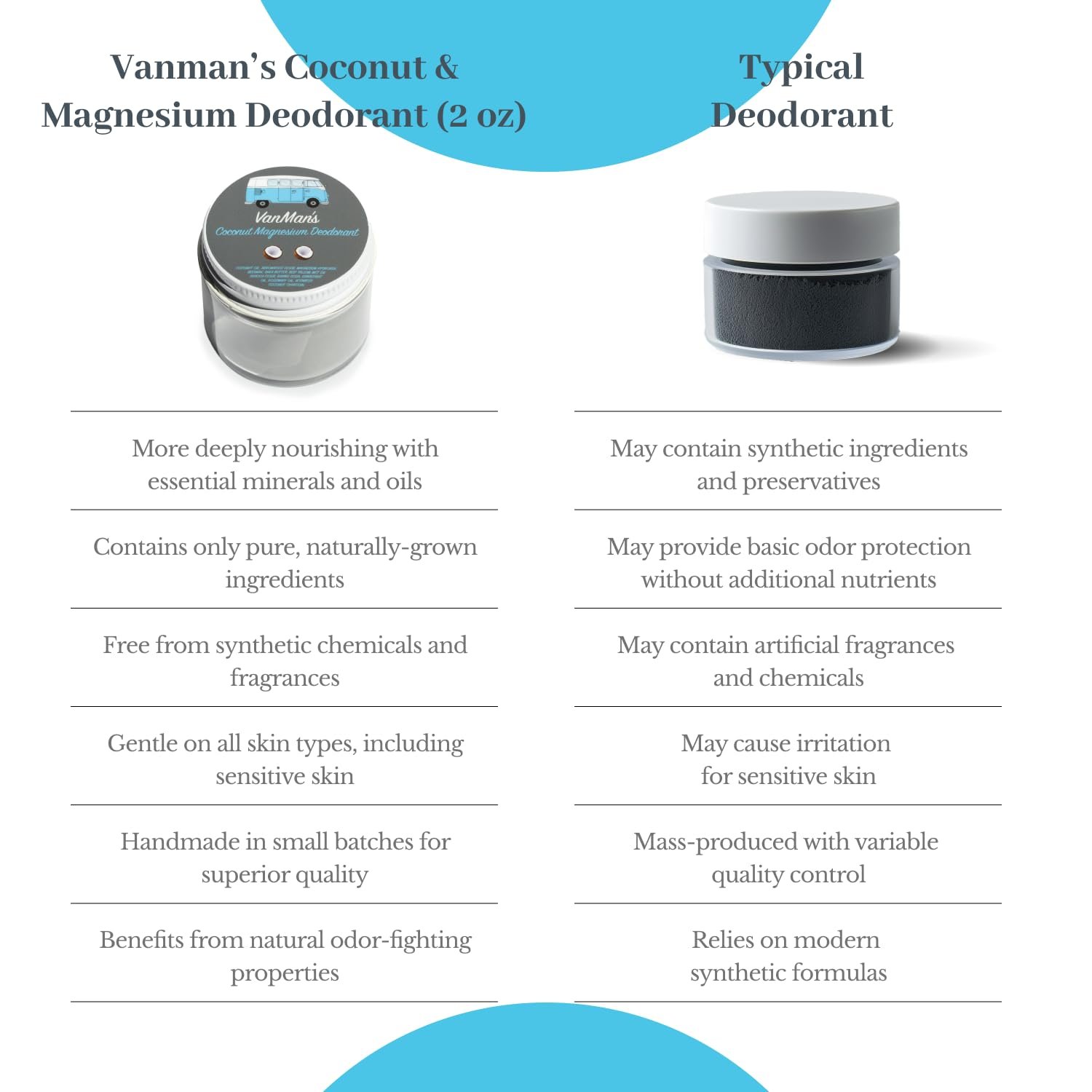 Handmade Coconut and Magnesium Deodorant (2 Pack): Crafted with pure magnesium and baking soda, this magnesium and coconut deodorant offers gentle and effective odor reduction