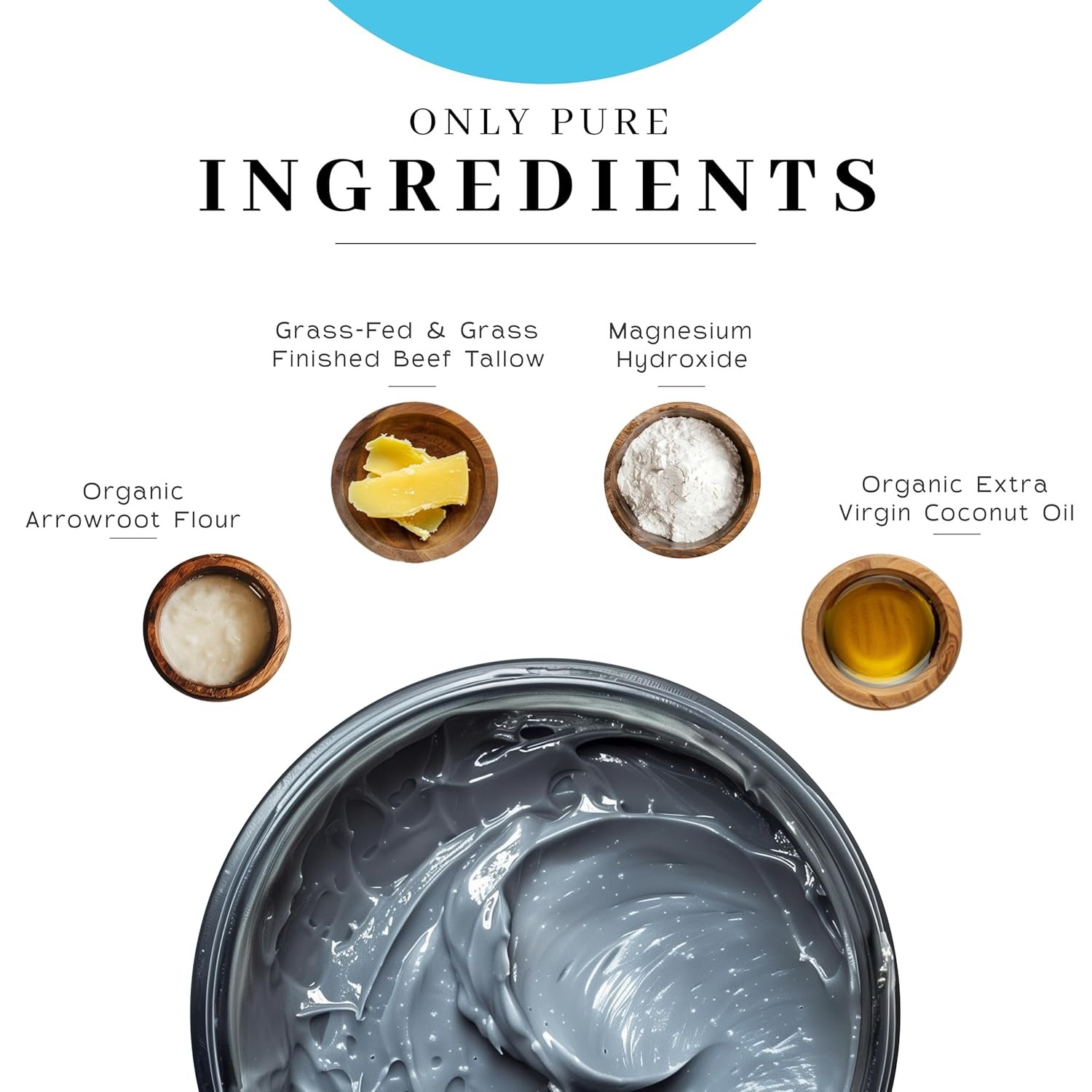 Only Pure Ingredients: Made with coconut oil, arrowroot oil, magnesium hydroxide, and grass-fed beef tallow, this deodorant is gentle and suitable for delicate skin
