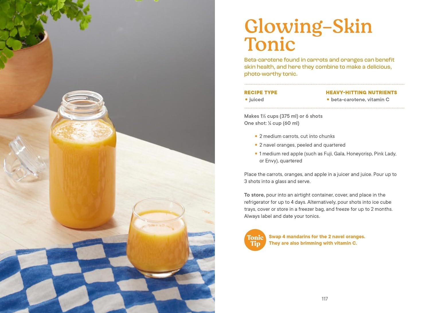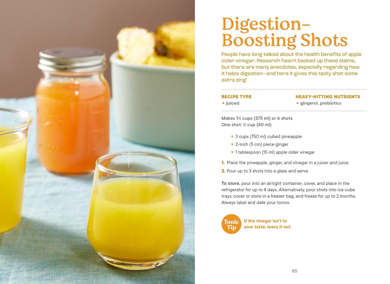 Amidor covers juicing, blending, straining, and steeping—with an overview of food safety, and how to take tonics as part of a healthy eating plan. Each recipe also contains a “tonic tip” providing additional insight on key ingredients, substitutions, or what to do with leftover ingredients to minimize food waste.