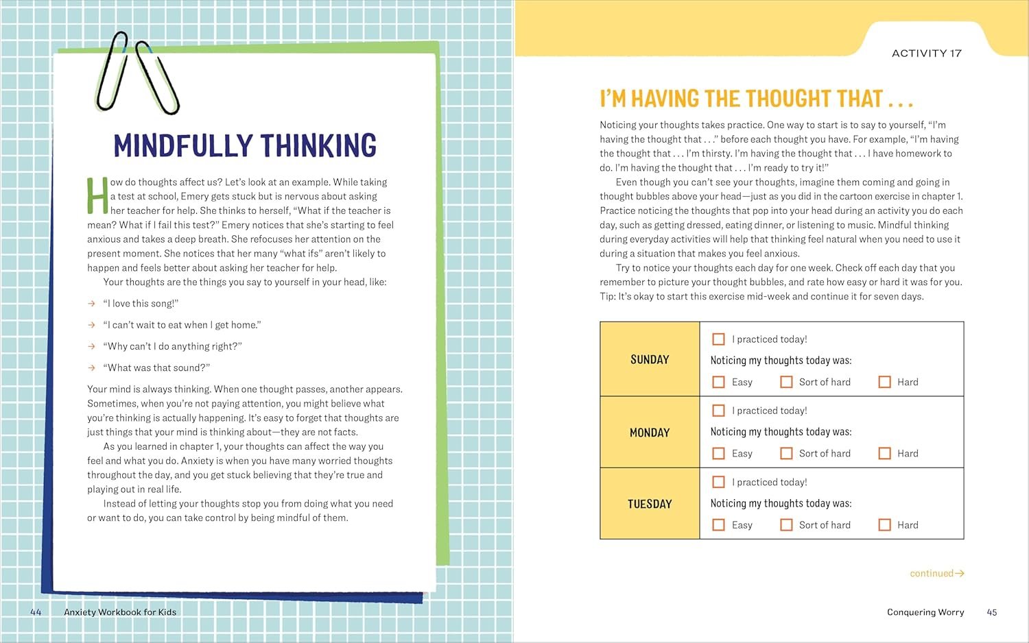 Making new friends, studying for a big test, or trying something new can make kids feel anxious, but the Anxiety Workbook for Kids teaches them simple ways to work through anxious feelings with mindfulness. Through 50+ anxiety-reducing activities, kids will learn techniques like deep breathing and positive thinking, so they can stay in the moment and take on any challenge!