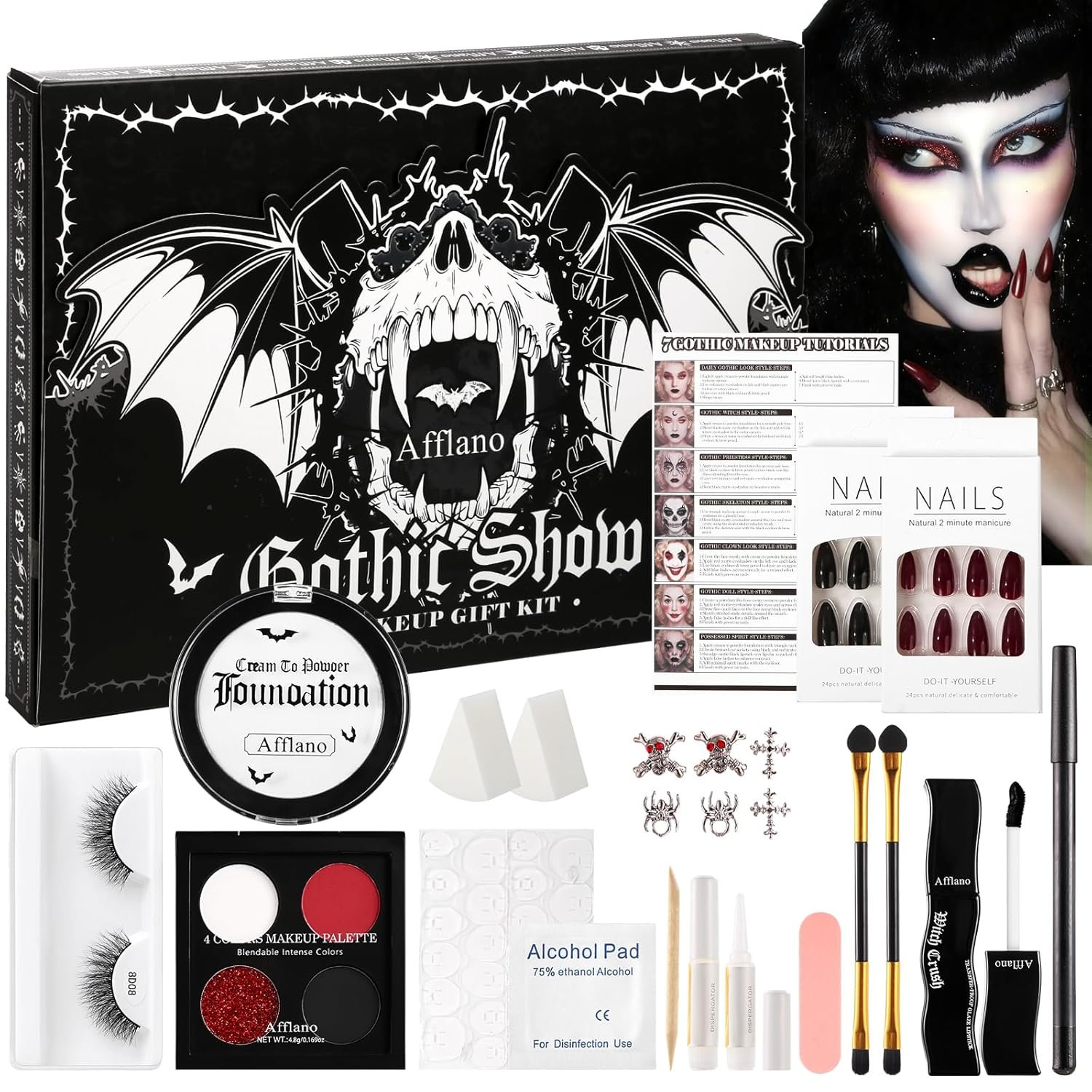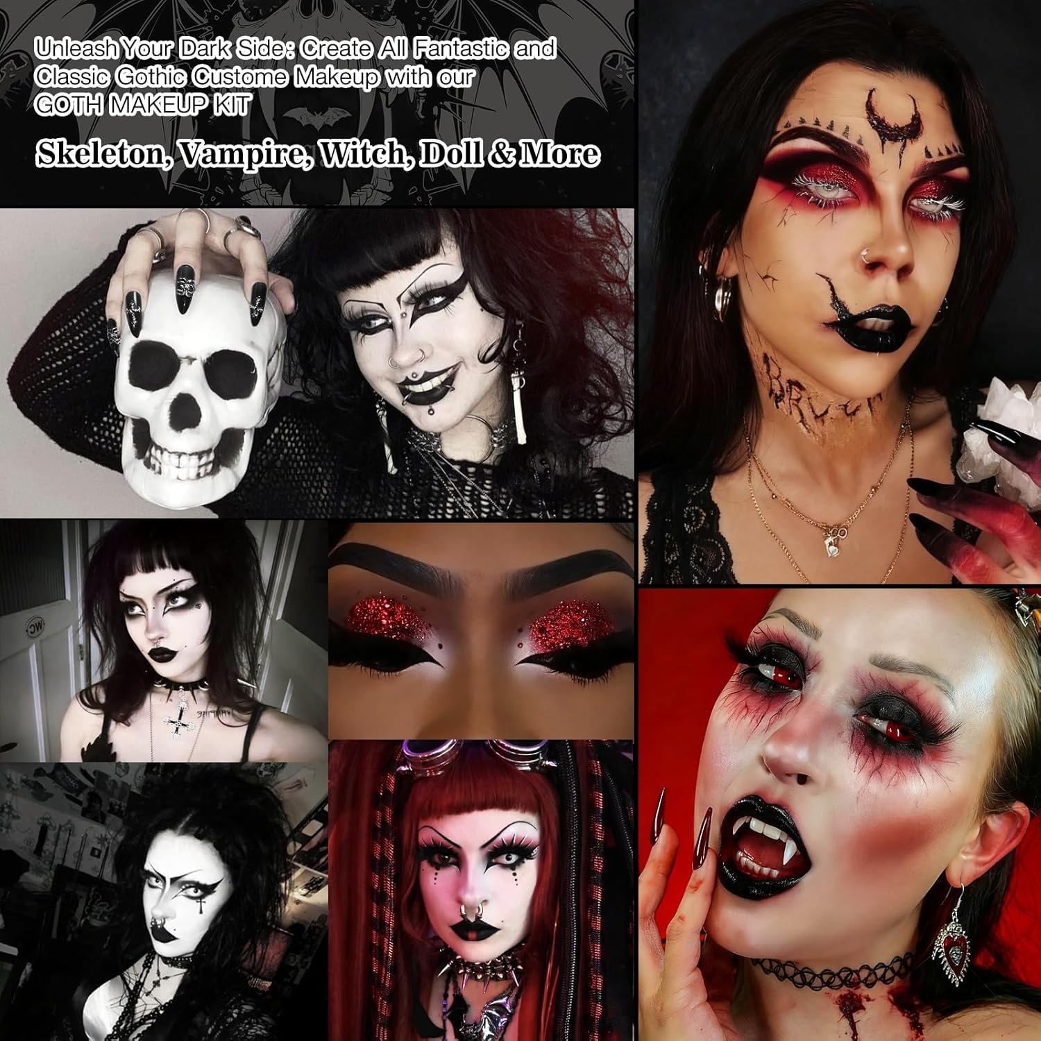 🖤👻Perfect Gift for Makeup Lovers: Packaged as a complete set, this kit is the ultimate gift for any alternative makeup enthusiast, cosplayer, or friend who loves to stand out. It arrives ready to gift for Halloween, birthdays, or any occasion. Dive into the world of SFX and gothic beauty with confidence, thanks to the easy-to-follow tutorials and professional-quality products designed for both beginners and pros.