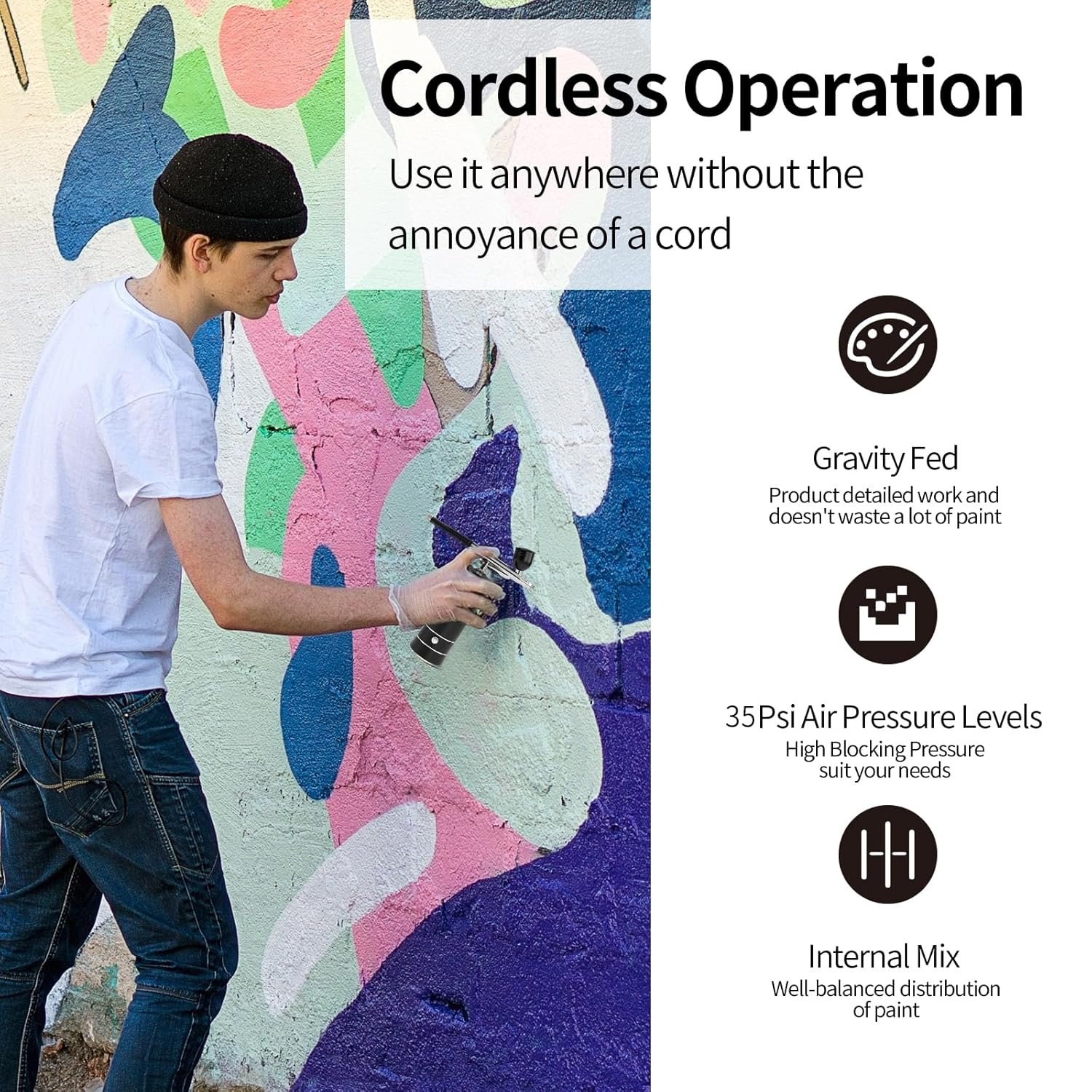 【Larger battery capacity and convenient charging】Compared to regular batteries, we use batteries that are more expensive and have a larger capacity, which can greatly extend your working hours and make them more durable and long-lasting.Our airbrush gun is equipped with a USB charging cable, which makes charging convenient for you.