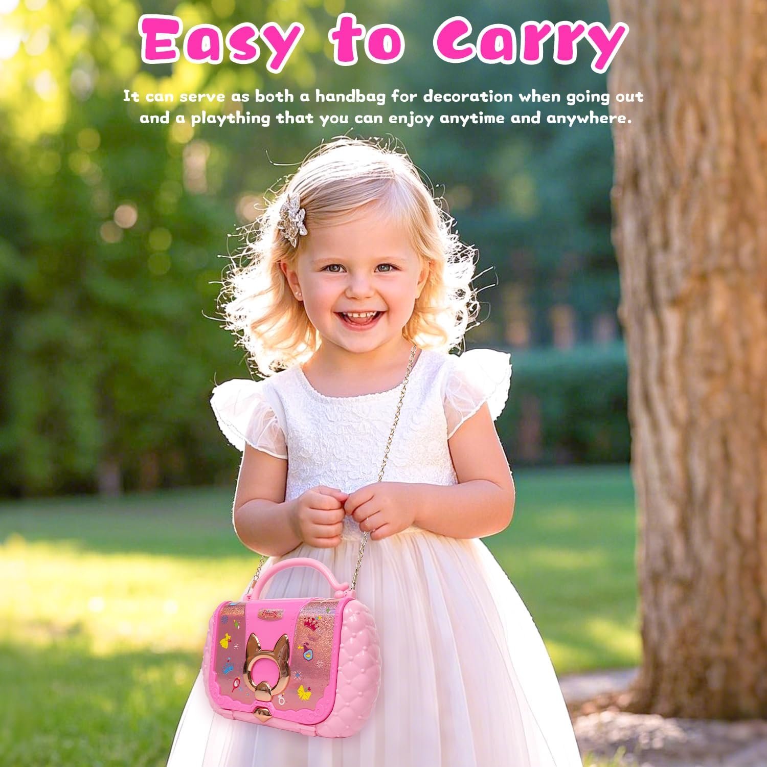 【Portable & Stylish, Wear Your Glam!】This kids makeup kit is designed as a chic crossbody bag that can be worn over the shoulder or carried by hand for ultimate convenience. Its lightweight design allows little ones to play and touch up anytime, anywhere—whether on trips or at parties. Plus, it doubles as a trendy accessory to elevate their OOTD, blending playfulness with everyday style to spark confidence and creativity!