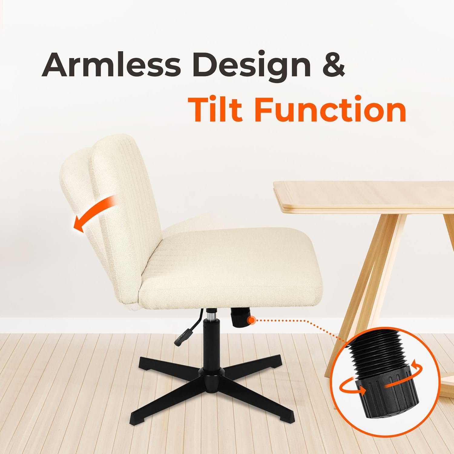 Tailored Comfort – This armless desk chair features a 360° rotating seat and a tilt function, making it perfect for home offices, living rooms, and bedrooms, providing comfort for activities like reading or gaming.