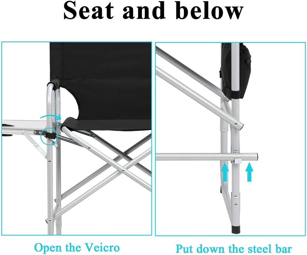 Humanized Design: This director chair has a folding table on the right side, which can put food and personal items within reach. In addition, as a makeup chair, there is a storage bag on the other side, you can put cosmetics in the bag for easy access