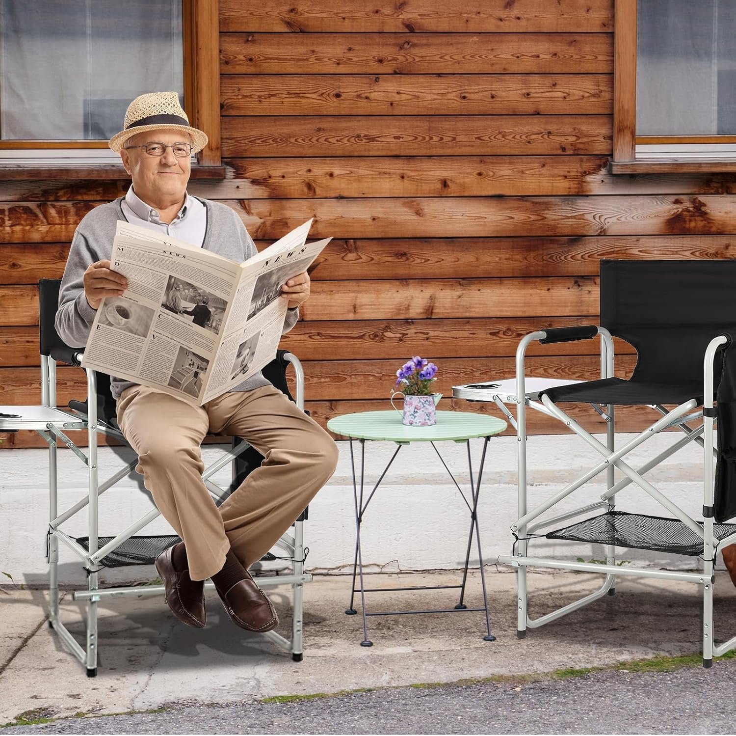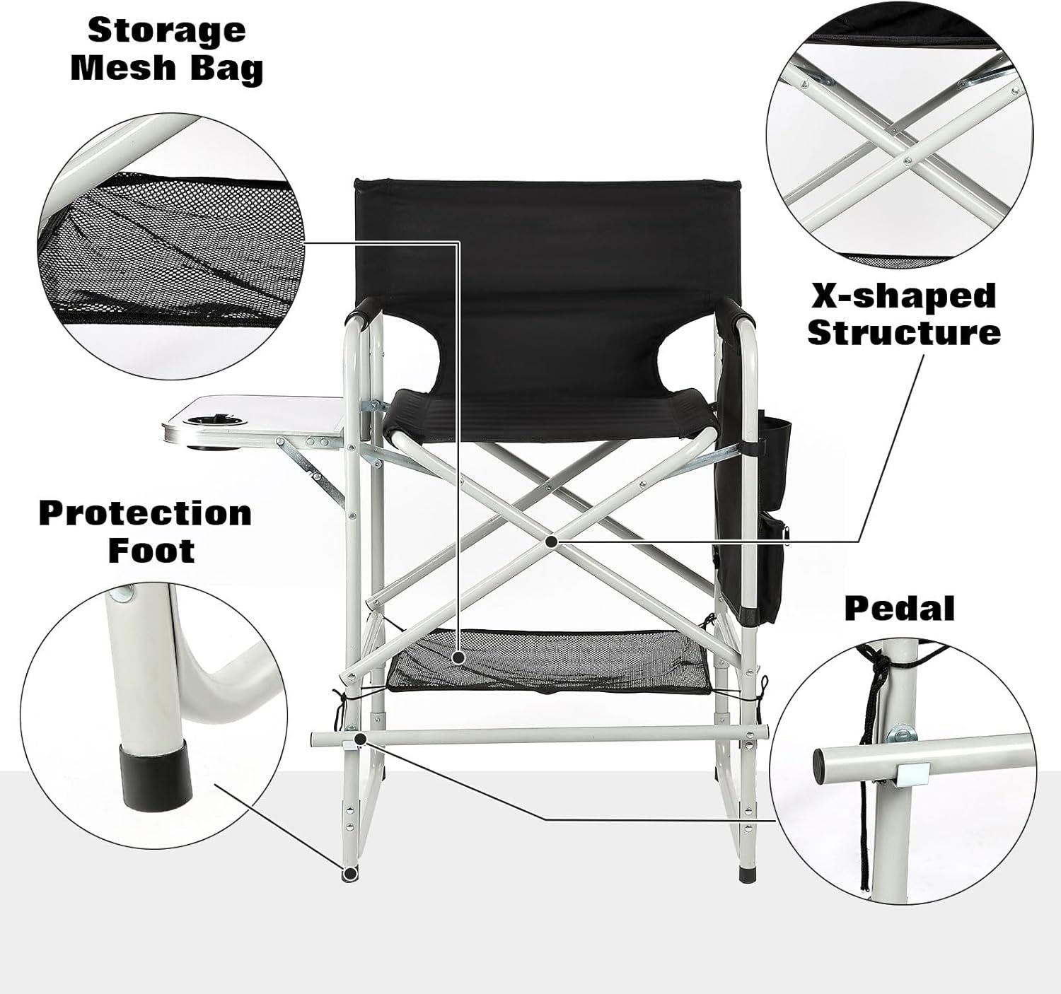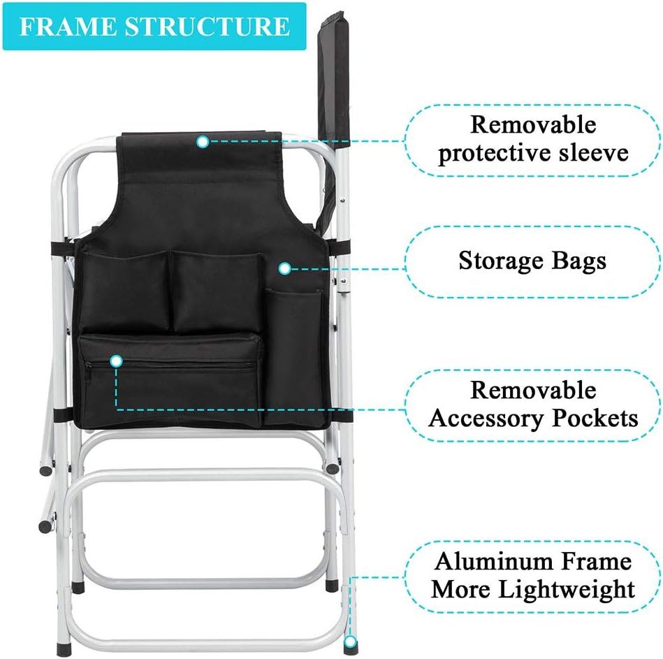 STORAGE: The JXUFDHO Director Chair is equipped with a side table and storage bag, on which you can store water cups, mobile phones, documents and other items, as well as cosmetics and other items, providing additional storage space