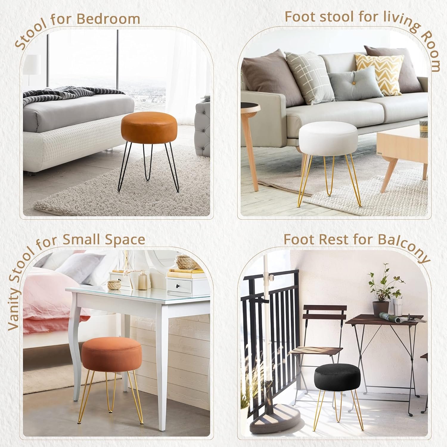 Multi-Functional: This vanity stool can serve as a footrest, vanity stool, or shoe bench, and it easily converts from an ottoman to a seat or side table with a tray, good for bathrooms, makeup rooms, offices, dorms, bedrooms, living rooms, and corridors
