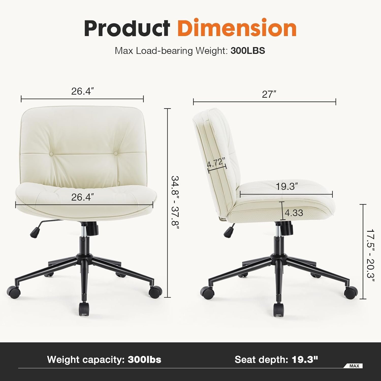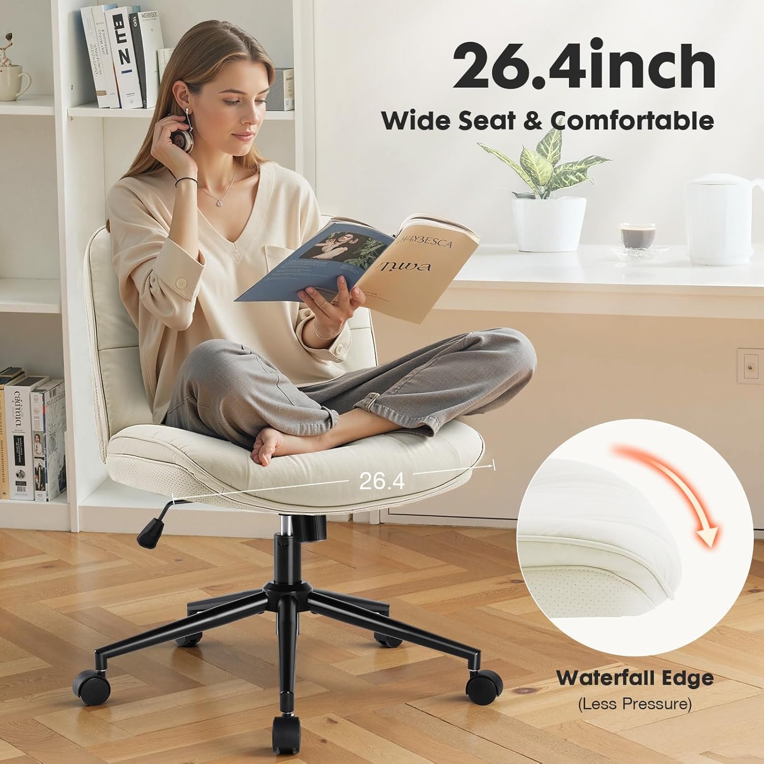 Spacious Cross-Legged Seat: This armless desk chair features a wide cushioned 26.4″ seat, perfect for sitting cross-legged or changing positions comfortably while working, studying, or relaxing.