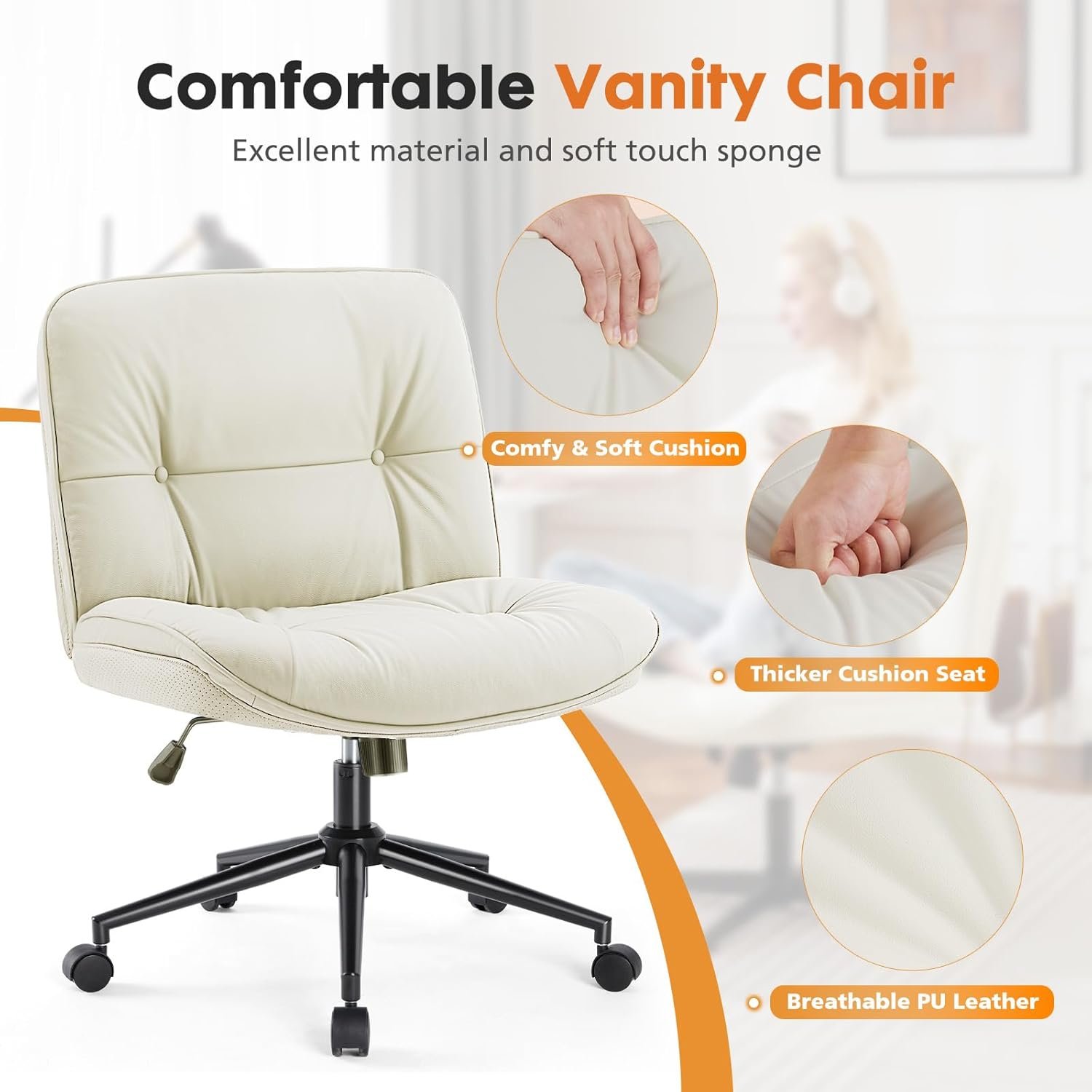 Ergonomic & Comfy Support: High-density sponge padding and a supportive backrest provide all-day comfort, making this office chair ideal for long hours at your computer, vanity, or makeup desk.