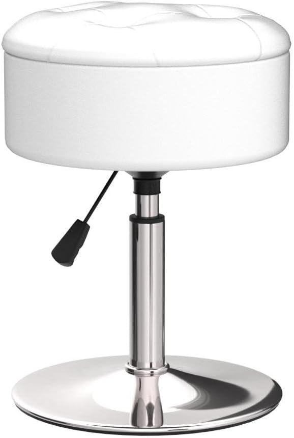 Comfortable and Easy to Clean: The vanity stool features a PU leather surface and a high-density sponge for extra comfort; It is waterproof, oil-proof, and easy to clean; The chrome metal base adds a luxurious touch and resists corrosion