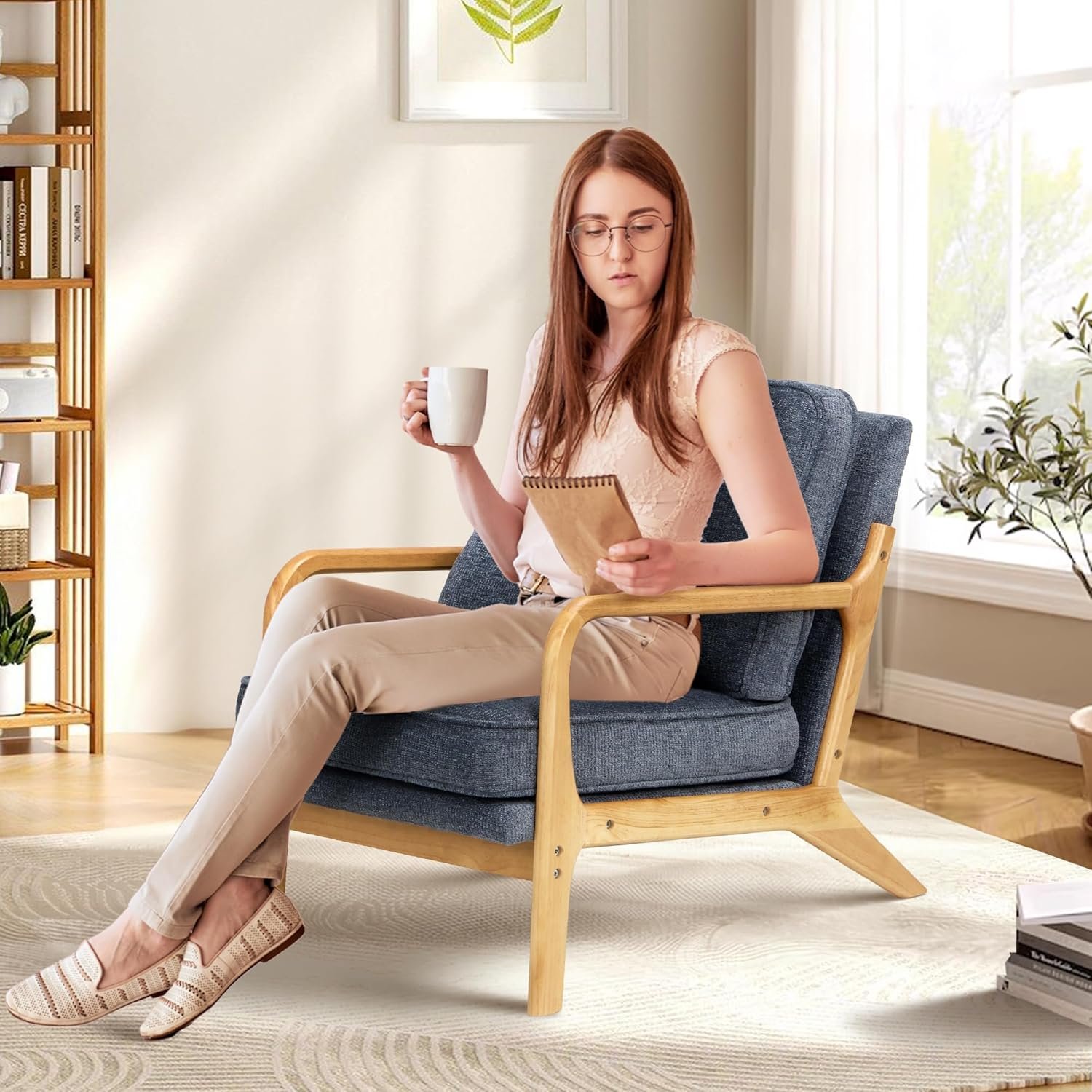 【Sturdy Solid Wood Frame 】:Crafted with a solid wood frame, this chair offers impressive stability and durability, supporting up to 275 pounds .The smooth, polished finish on the wood frame enhances both durability and aesthetic appeal, adding a refined touch to your living room or reading book.