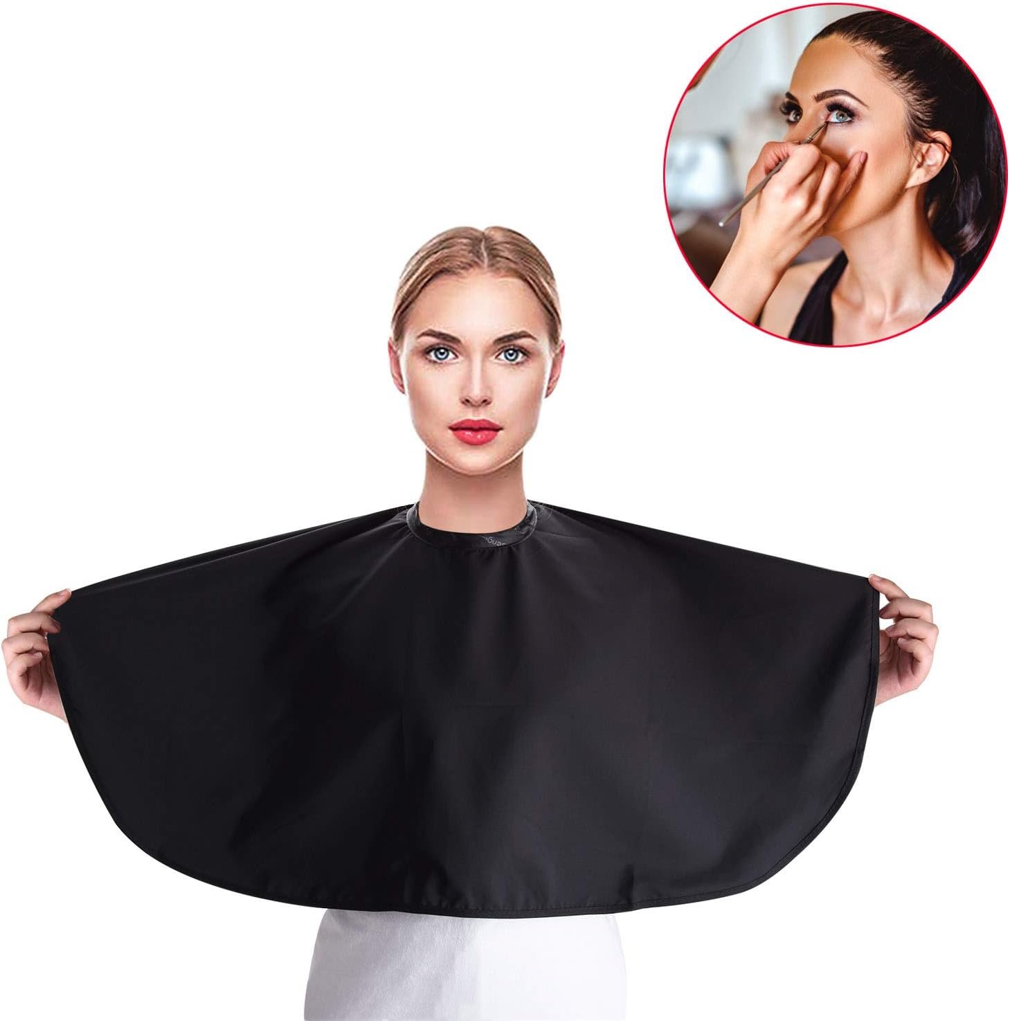 Noverlife Black Makeup Cape Chemical and Water Proof Beauty Salon Shorty Smock Lightweight Comb out Beard Apron