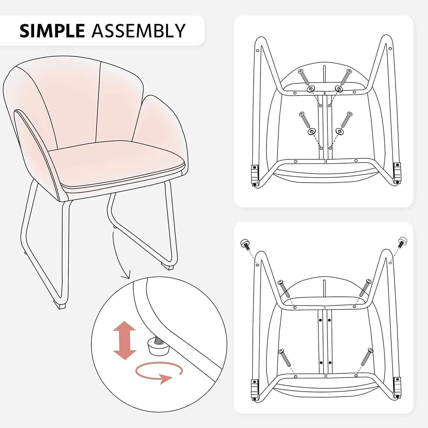 15-minute Assembly: The integral chair structure of this accent chair allows for a straightforward setup. Just fix the legs to the bottom and your new chair is ready to use