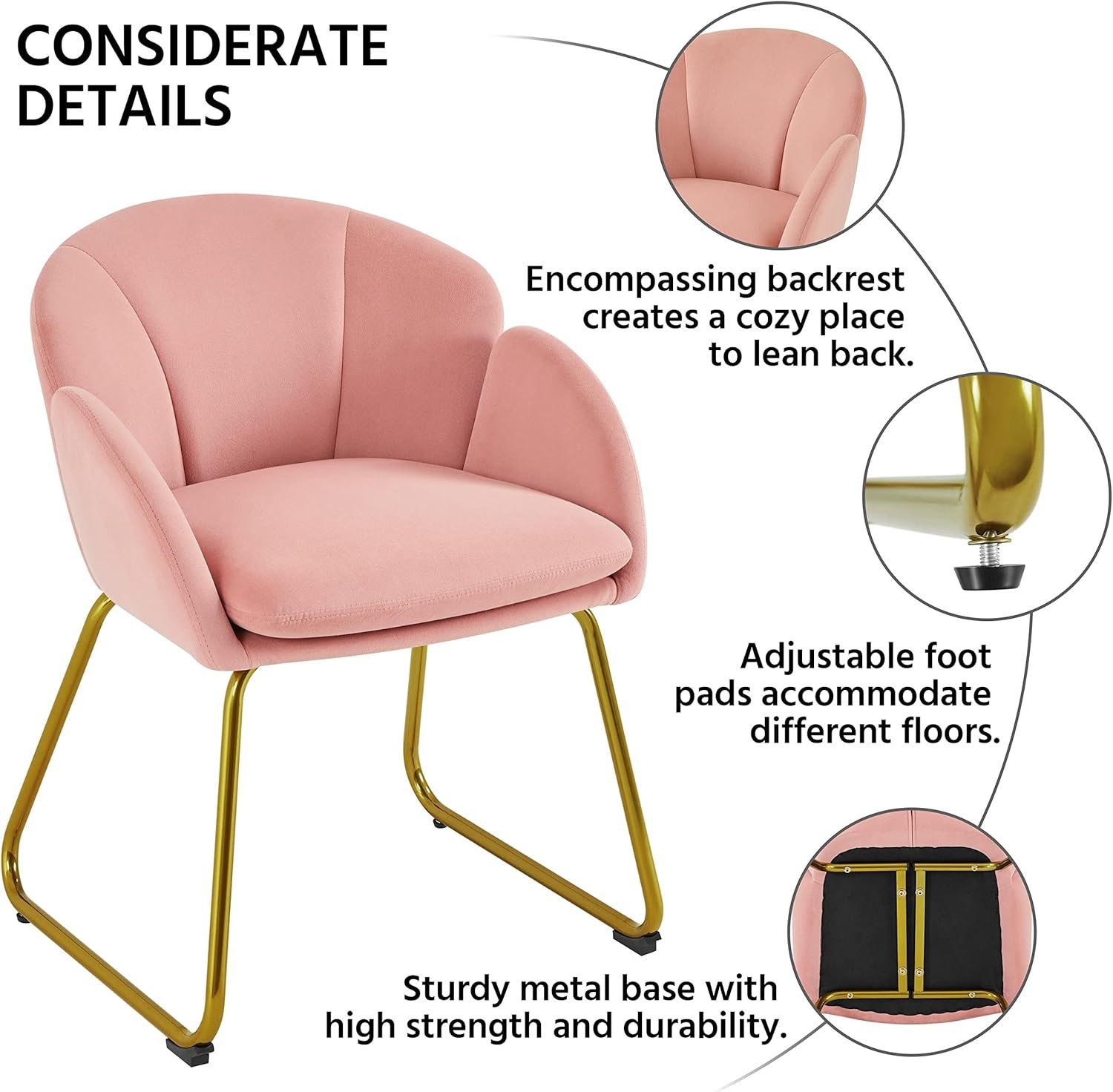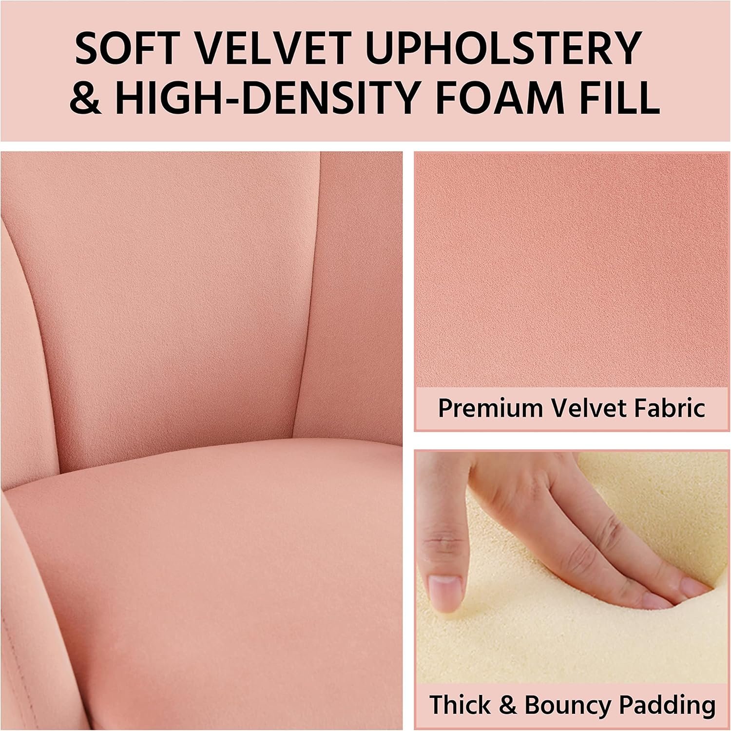 Supportive & Comfortable: This living room chair features an upholstered seat stuffed with medium density foam and enveloped in soft-to-touch velvet fabric, giving you a comfortable sitting experience