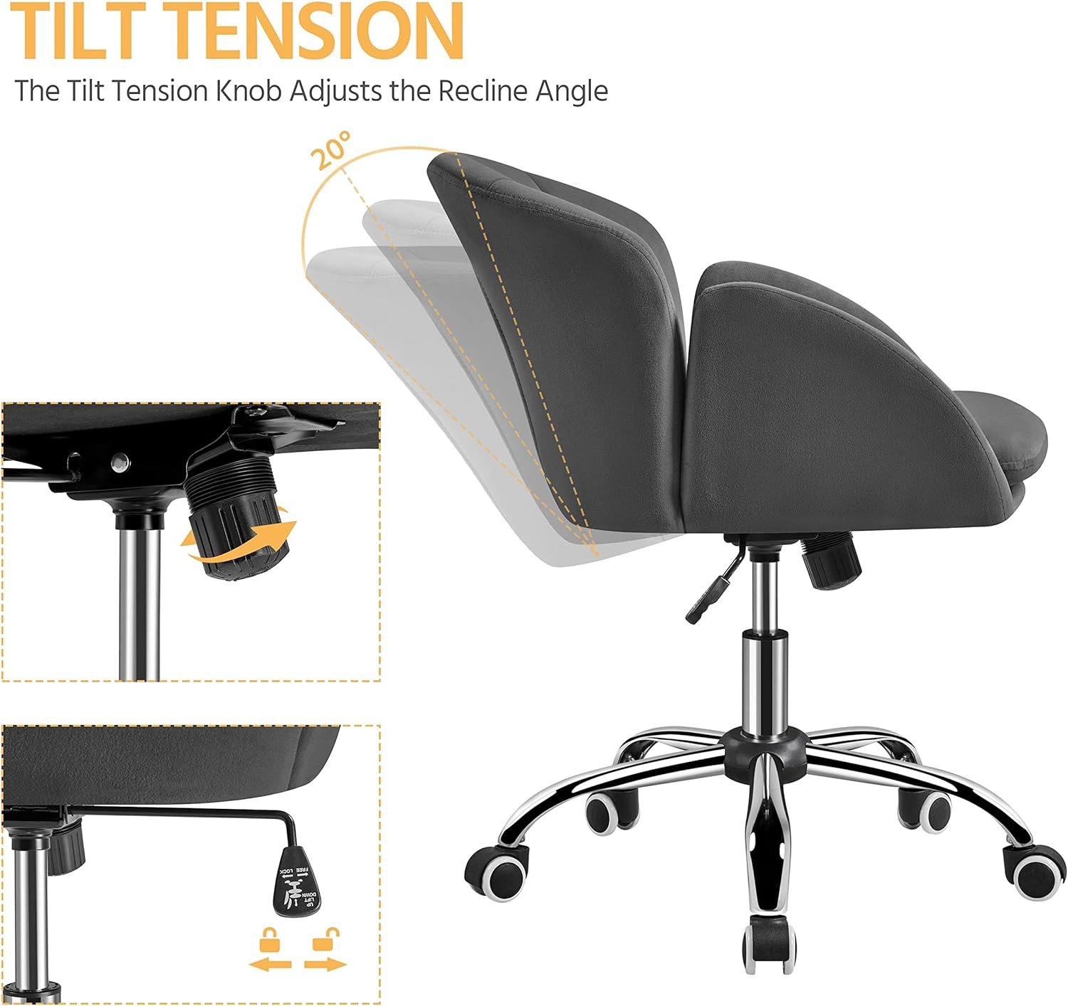 Adorable Vanity Chair: This modern makeup chair establishes a refined ambiance with its lush velvet covering, distinctive petal-shaped backrest, and sleek chrome base, transforming your vanity space into an enchanting world. A height-adjustable swivel chair offers versatile mobility in your beauty room and fits various vanity table heights