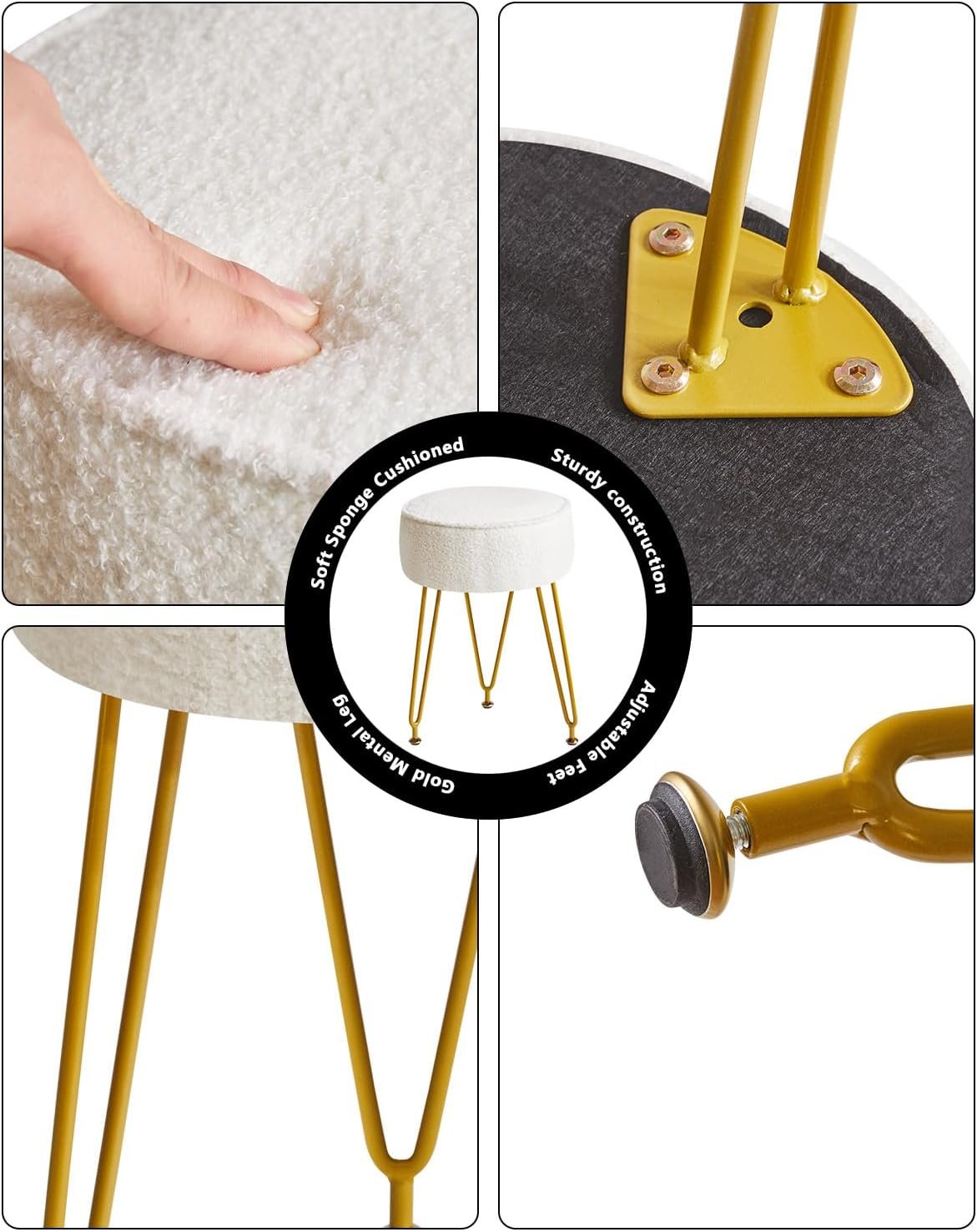 Multiple materials: The smooth circular soft seats are wrapped in luxurious teddy velvet and equipped with cushions inside, bringing you ultimate comfort. The sturdy base has three metal legs and is decorated with a gold powder coating for stability and aesthetics. This stool will be the ideal choice for you at home.