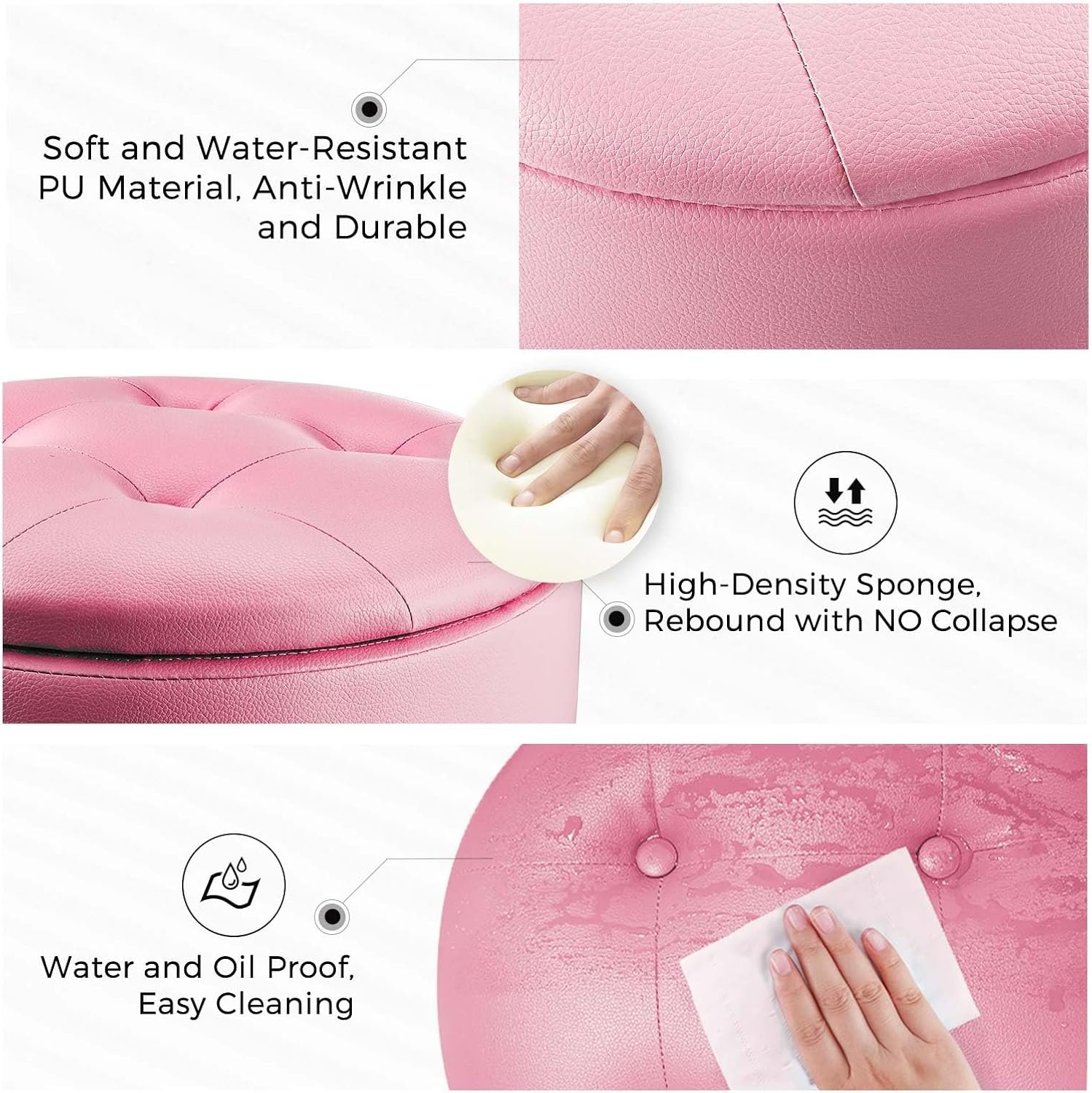 [Multifunctional storage space] There is a storage space with a capacity of 8.8 L inside the vanity stool, which is convenient for you to store daily necessities such as daily lipstick, eye shadow and books, etc. If you turn over the cover of the seat cushion over, it will be a very elegant small coffee table for desserts or coffee
