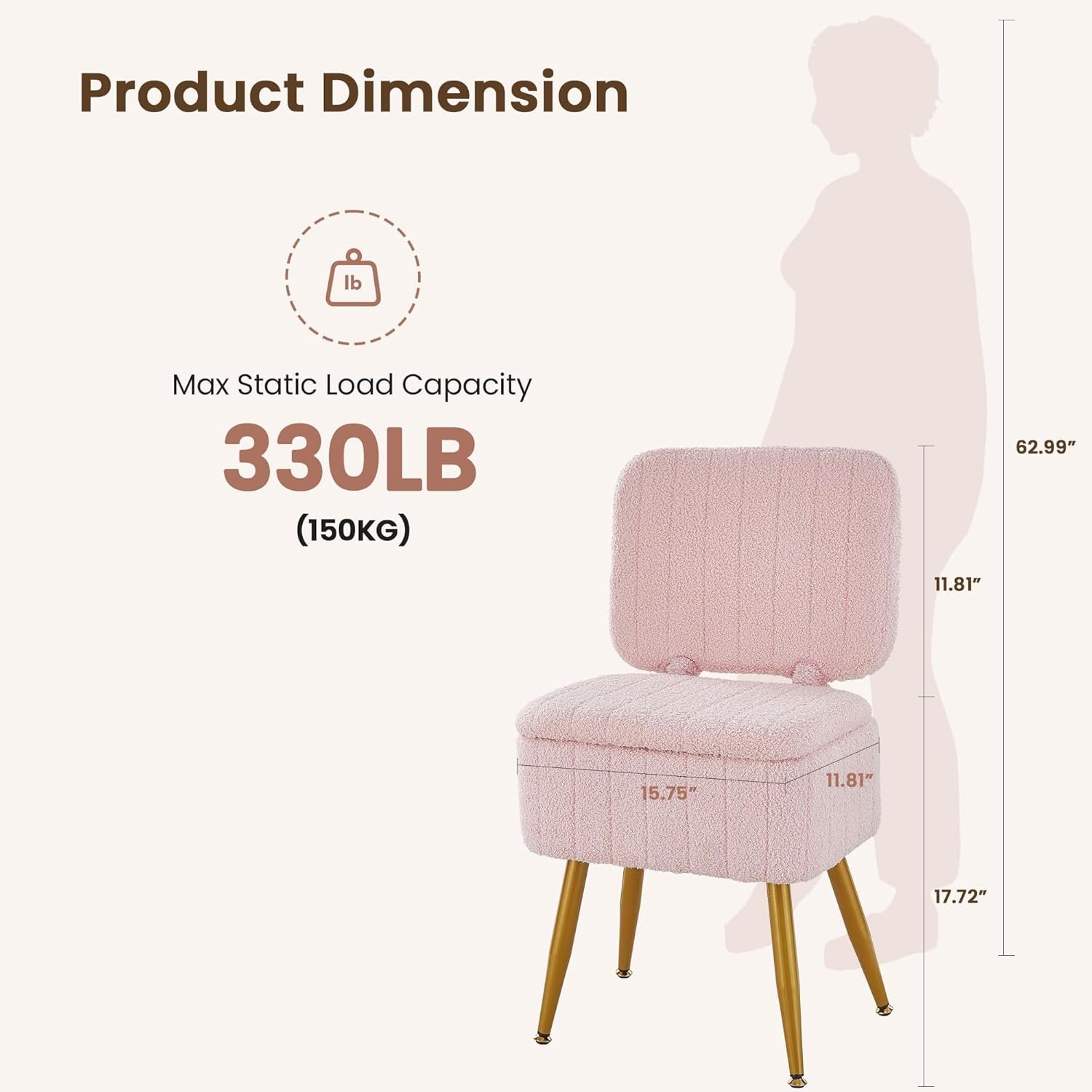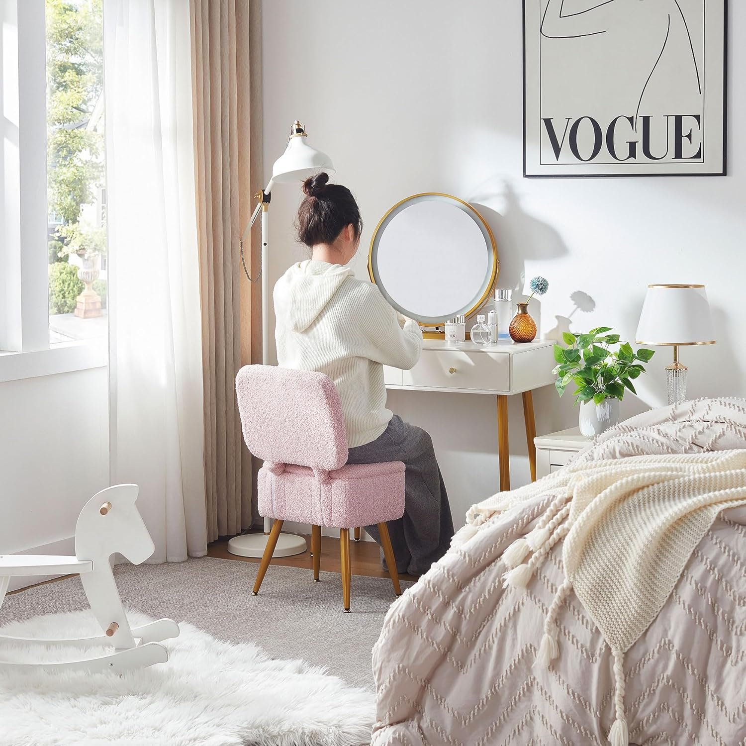Versatile Storage Solution: This vanity stool features a cleverly designed ottoman with storage, allowing you to keep your makeup, accessories, or small personal items organized and out of sight. Enjoy a clutter-free environment while having your essentials within easy reach!
