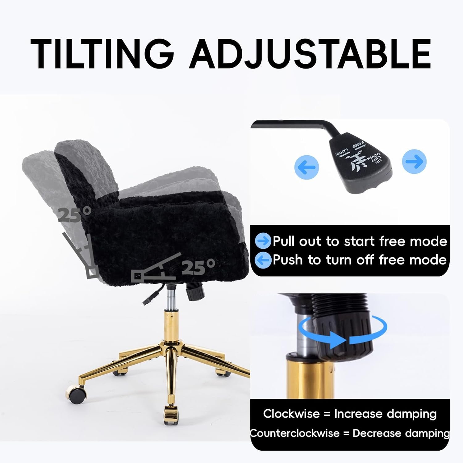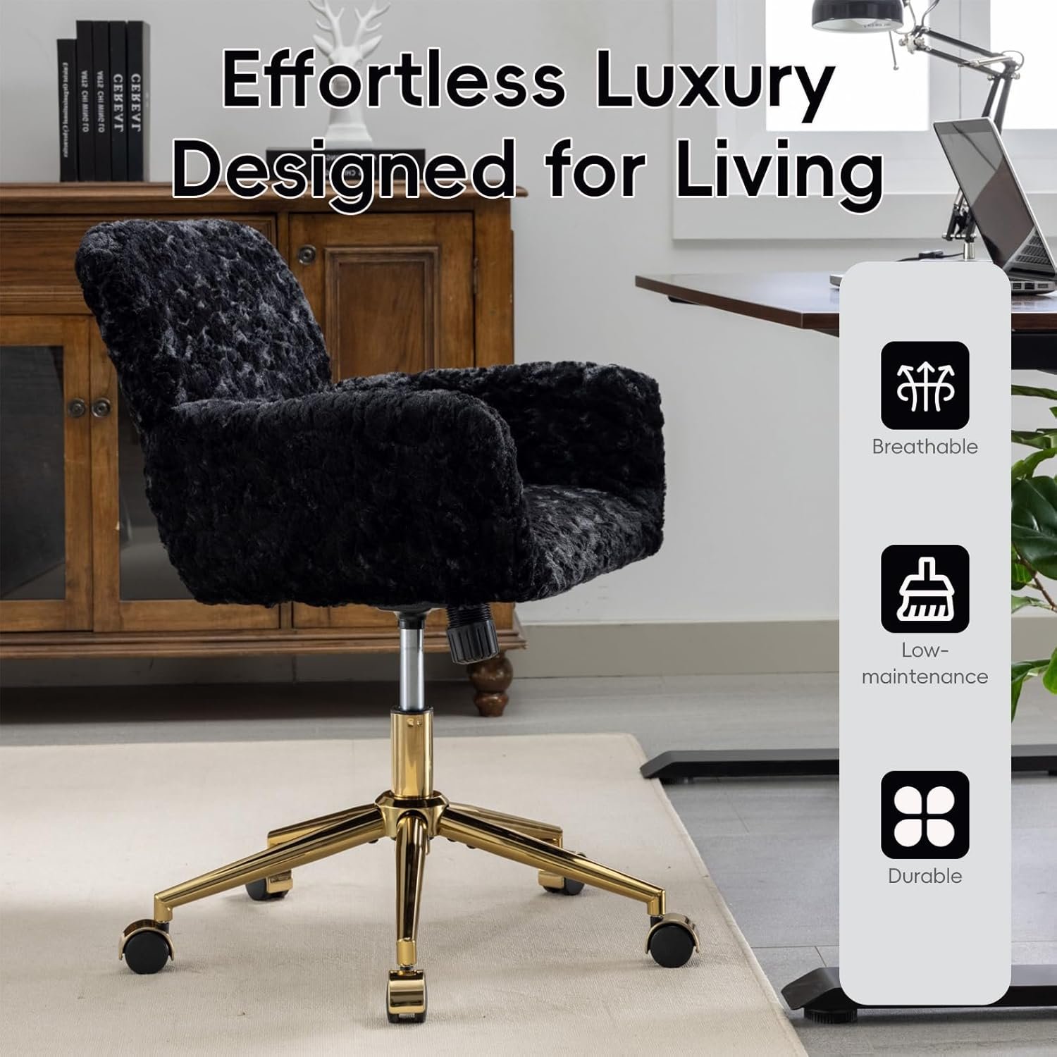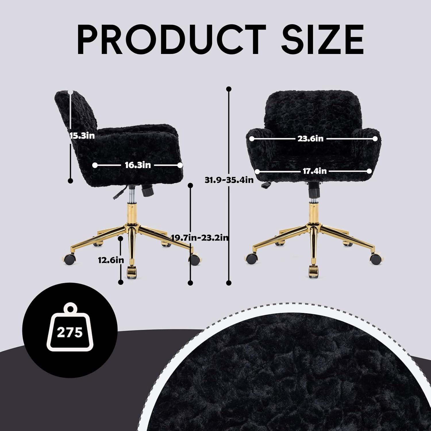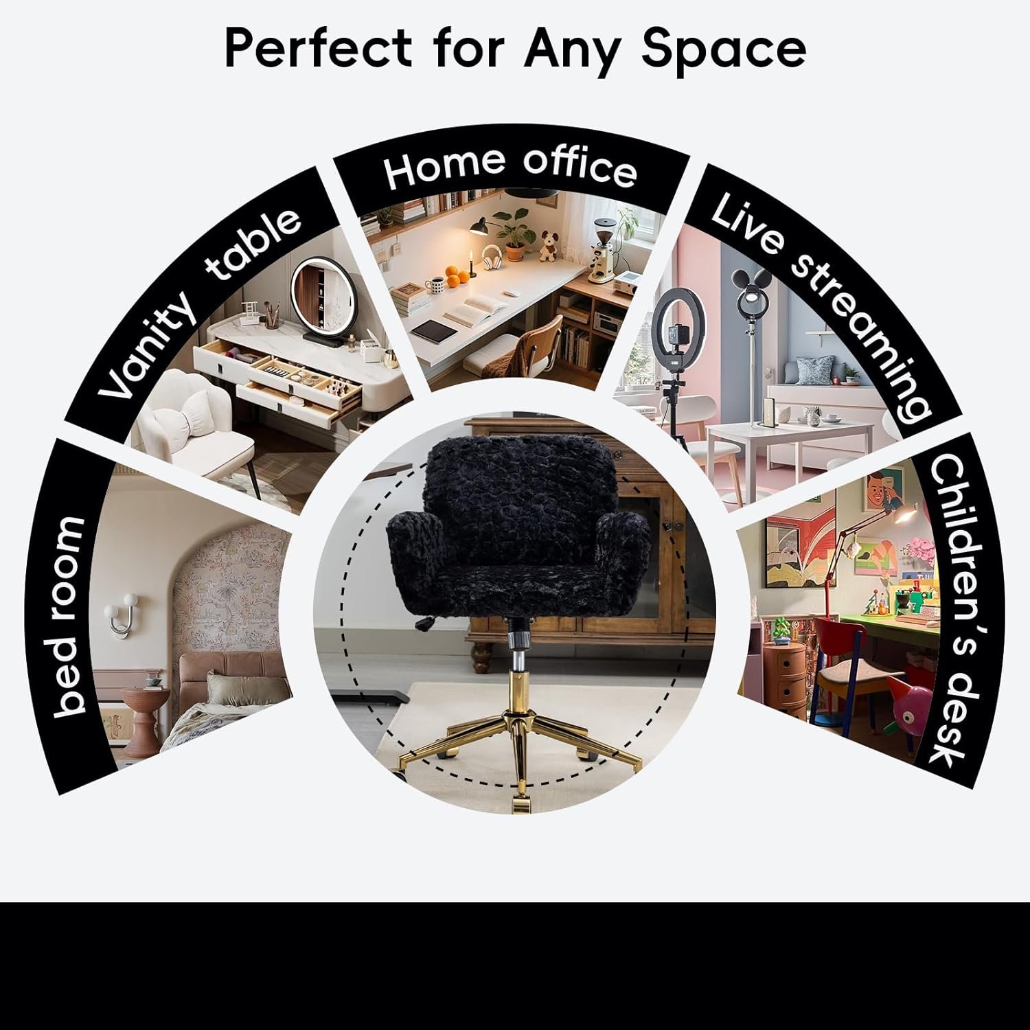 ✔ Chic Glam Style with Comfort – Elevate your room with a faux fur desk chair that blends plush softness with a glamorous gold base. Perfect as a vanity chair, makeup chair, or office chair, it adds both function and fashion to your space.