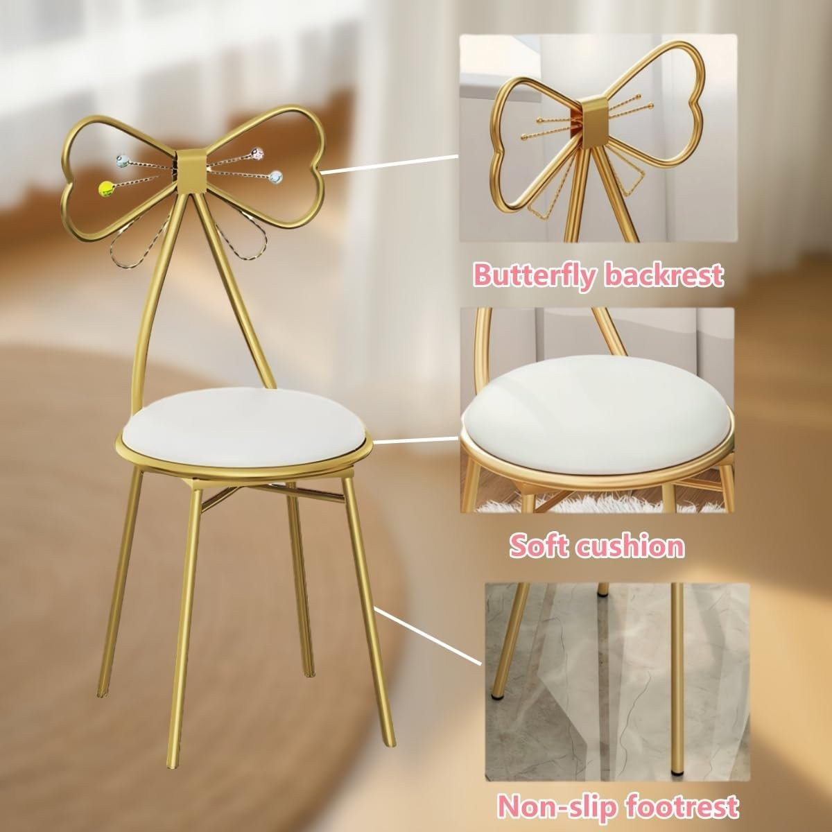 The vanity stool chair comes with a lovely butterfly shaped backrest that is elegant and beautiful. Easy to assemble, it only takes a few minutes to complete.