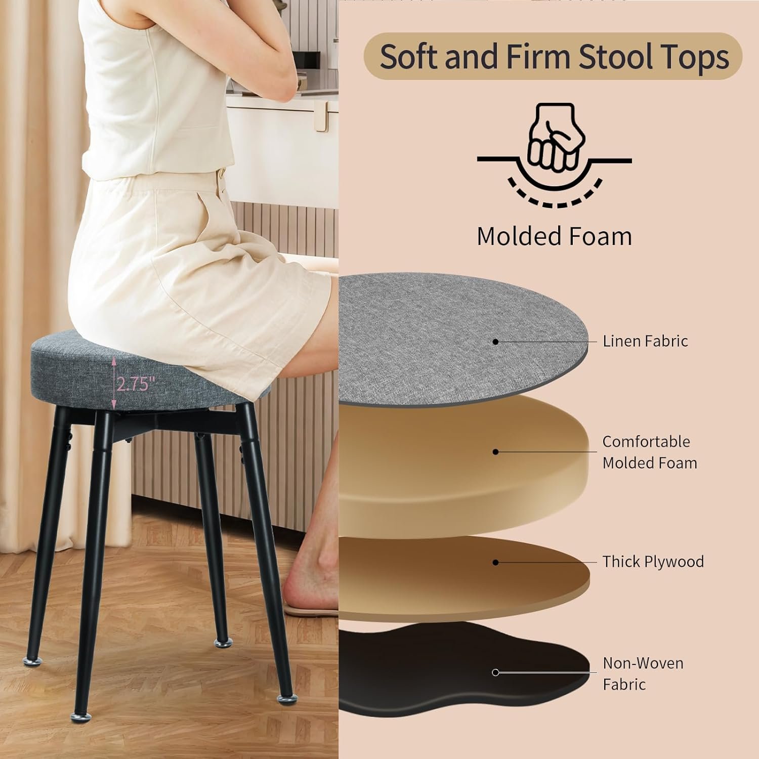 Comfortable Bench Top: The makeup chair’s seat cushion is made of comfortable, high-density molded foam, 2.75 in height, and covered in breathable linen fabric, providing a soft, makeup vanity chair comfortable seating experience for the ultimate in comfort. Make it a stylish addition to your home decor.
