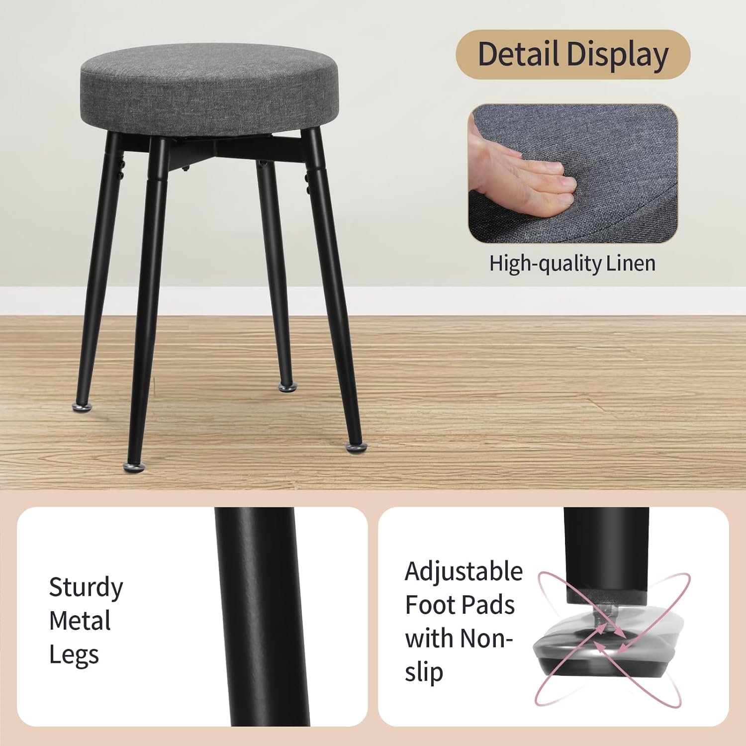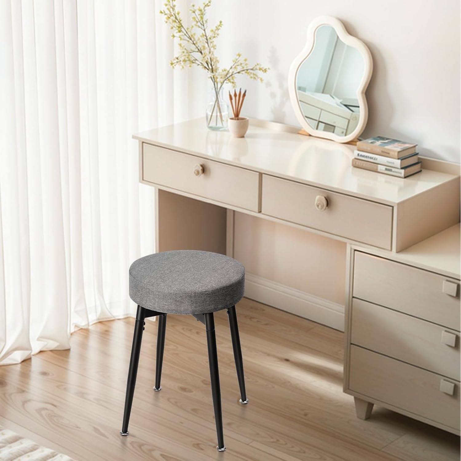 Easy To Assemble: This stool for vanity is easy to install. We provide detailed installation instructions and a simple installation tool, to help you easily install the stool. All hardware are included in the package. Gray linen cushions, not easily soiled, breathable.