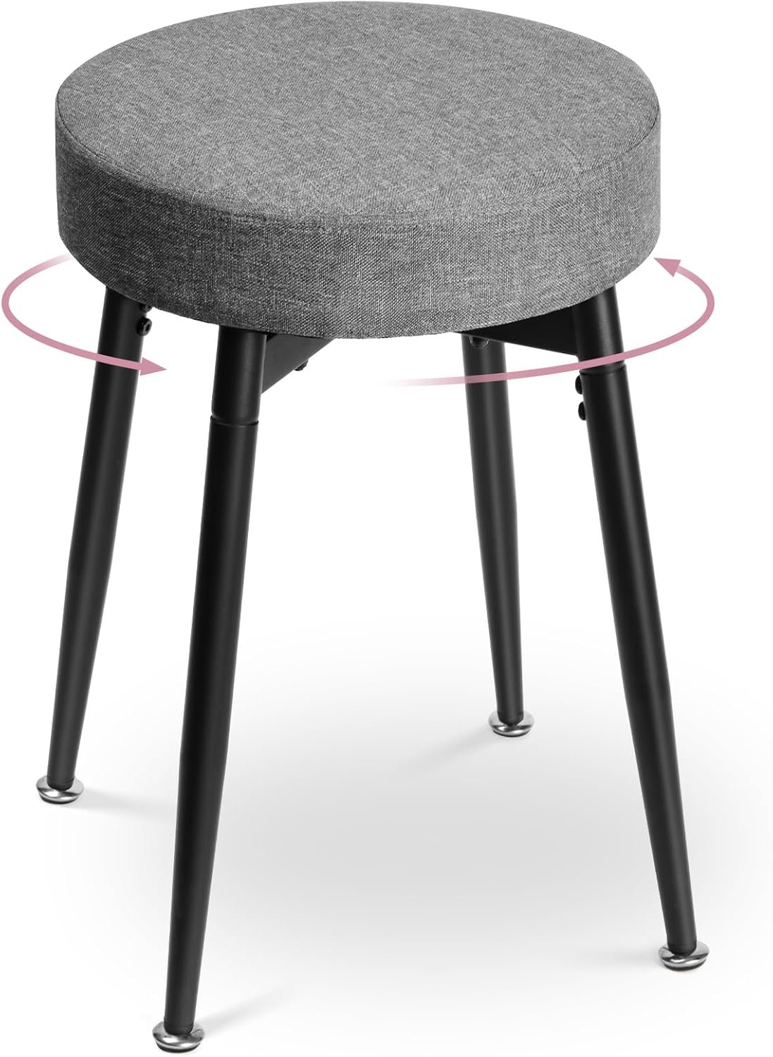 Sturdy Metal Support: The legs of this ottoman foot rest are supported by sturdy metal supports. With a weight capacity of up to 250 lbs. The sturdy metal legs form a rock-solid foundation and are complemented by adjustable, non-slip leveling feet, making this round vanity chair extremely stable and guaranteed to make scratch-free contact.