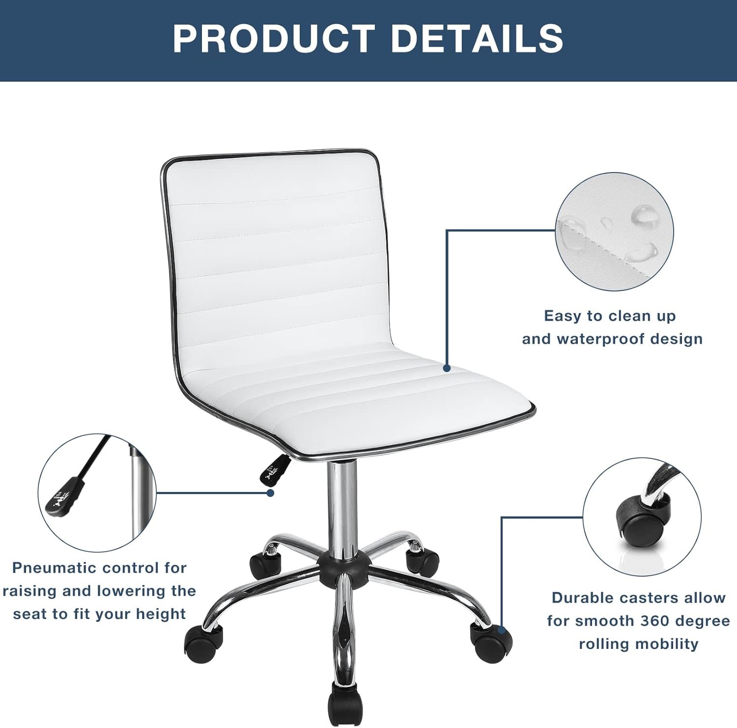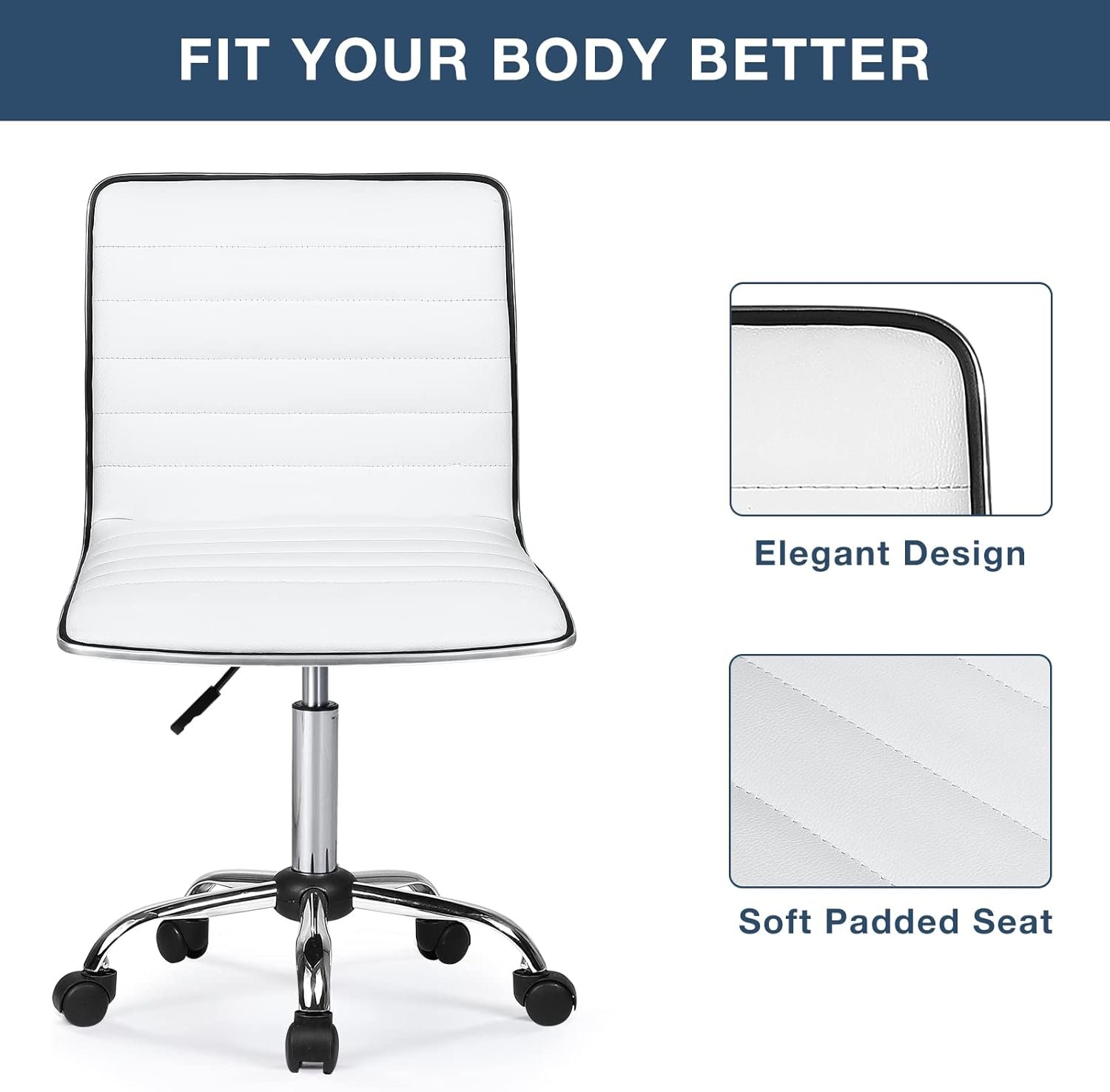 Perfect Size and Looks Stylish: Our leather office chair add to the extra modern style. The armless design allows this chair to slide without difficulty under your vanity table, computer desk, writing desk, easy to push under the office desk for better space-saving
