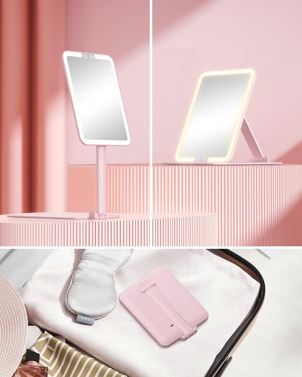 【Portable Travel Vanity Mirror】Dimensions: 6.1in*7.8in. Designed to be compact and foldable, the travel mirror with light comes with a velvet storage bag for easy carrying in luggage, handbags, and backpacks