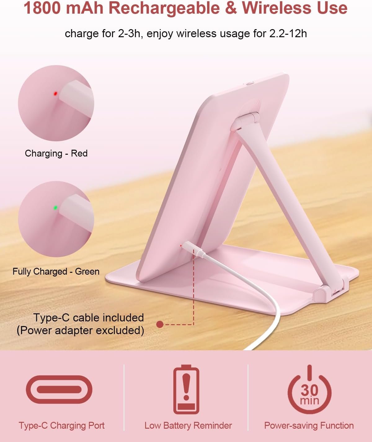 【3 Light Colors and Stepless Dimming】With 58 LED lights, it features smart lighting modes and highly sensitive touch controls. Simply tap with your fingers to switch freely between warm light, natural light, and white light modes. Long press for stepless dimming, allowing you to easily adjust brightness for your ideal lighting