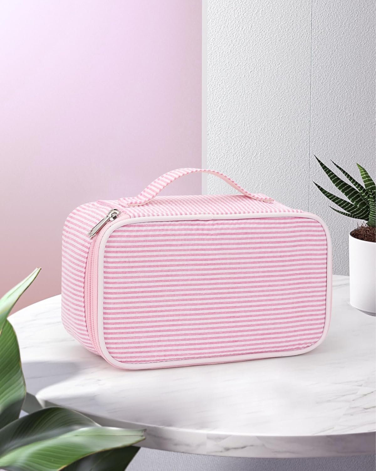 Cute Pink Makeup Bag – Size with 9.5*5.5*3.7 in, which is lightweight and portable cosmetic bag. It will organize all your beauty essentials neatly in place