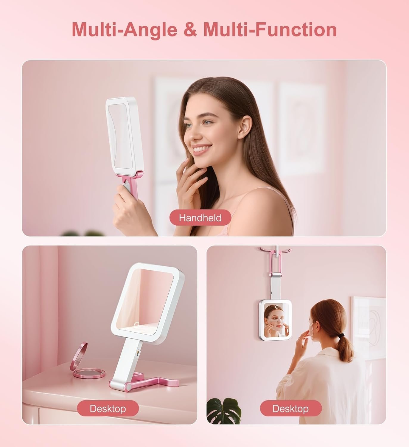 【Flexible and Compact】Featuring a 360° freely adjustable angle design, the portable vanity mirror is equipped with a stainless steel folding bracket, supporting three usage modes: handheld, desktop, and hanging. It easily adapts to different postures and environments, allowing you to find the best makeup angle anytime, anywhere. Travel makeup mirror is compact and light (0.78-inch thick), easily fitting into a bag—whether for travel, camping, or daily commuting, it’s perfect for on-the-go beauty needs in various indoor and outdoor scenes.