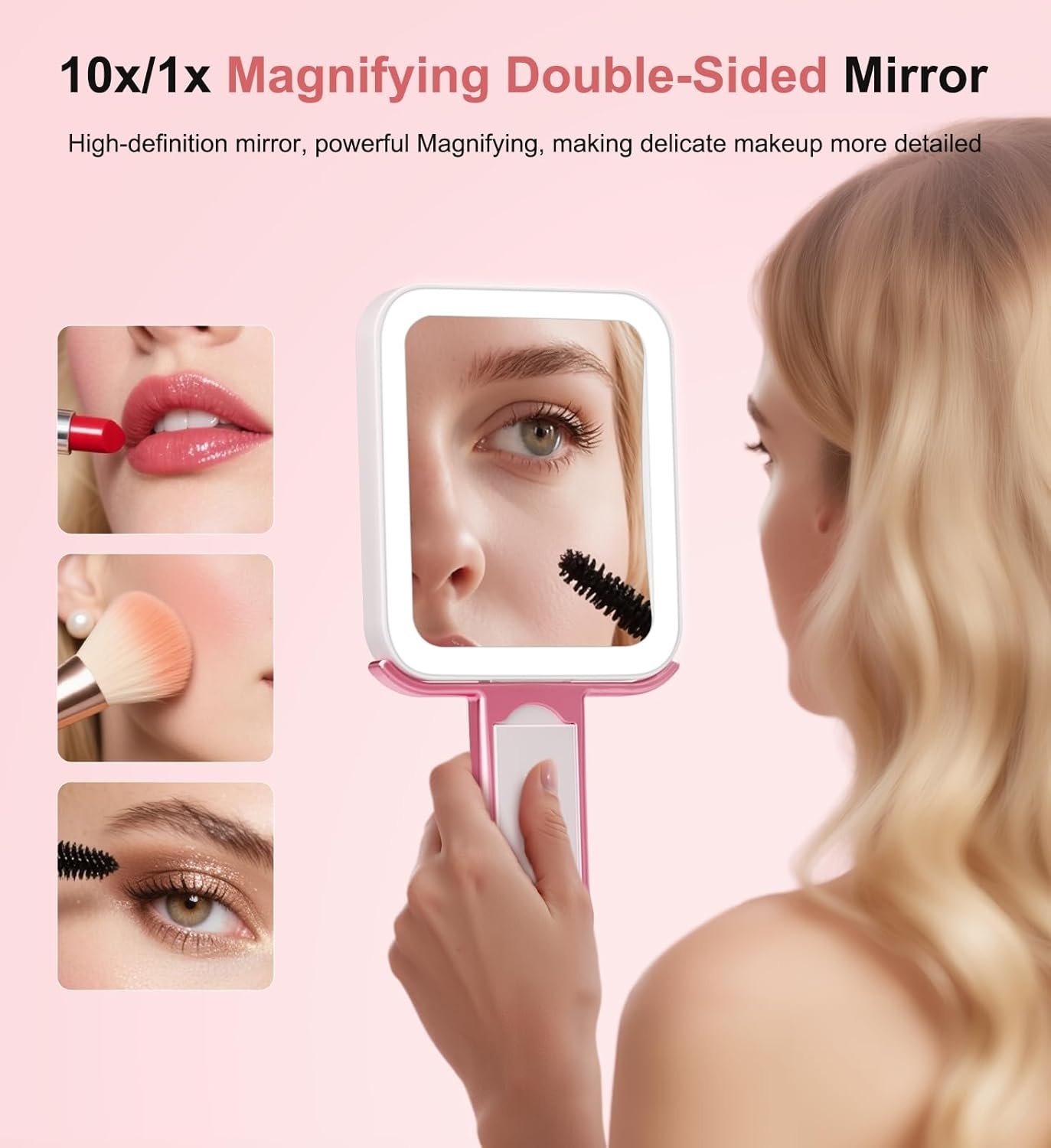 [Gift Attributes and Quality Service] This folding makeup mirror is packaged in a charming pink gift box, which is exquisite and fashionable. It contains a makeup mirror*1, an instruction manual*1, a USB charging cable*1, a storage bag*1, and a mirror cleaning cloth*1. It is a thoughtful and practical gift for special women. Travel makeup mirror with lights has undergone rigorous drop and pressure tests and is durable. At the same time, the makeup mirror makes an ideal gift for your mom, girlfriend, wife, or other loved ones, perfect for special occasions like Valentine’s Day, Mother’s Day, Christmas, New Year, and more.