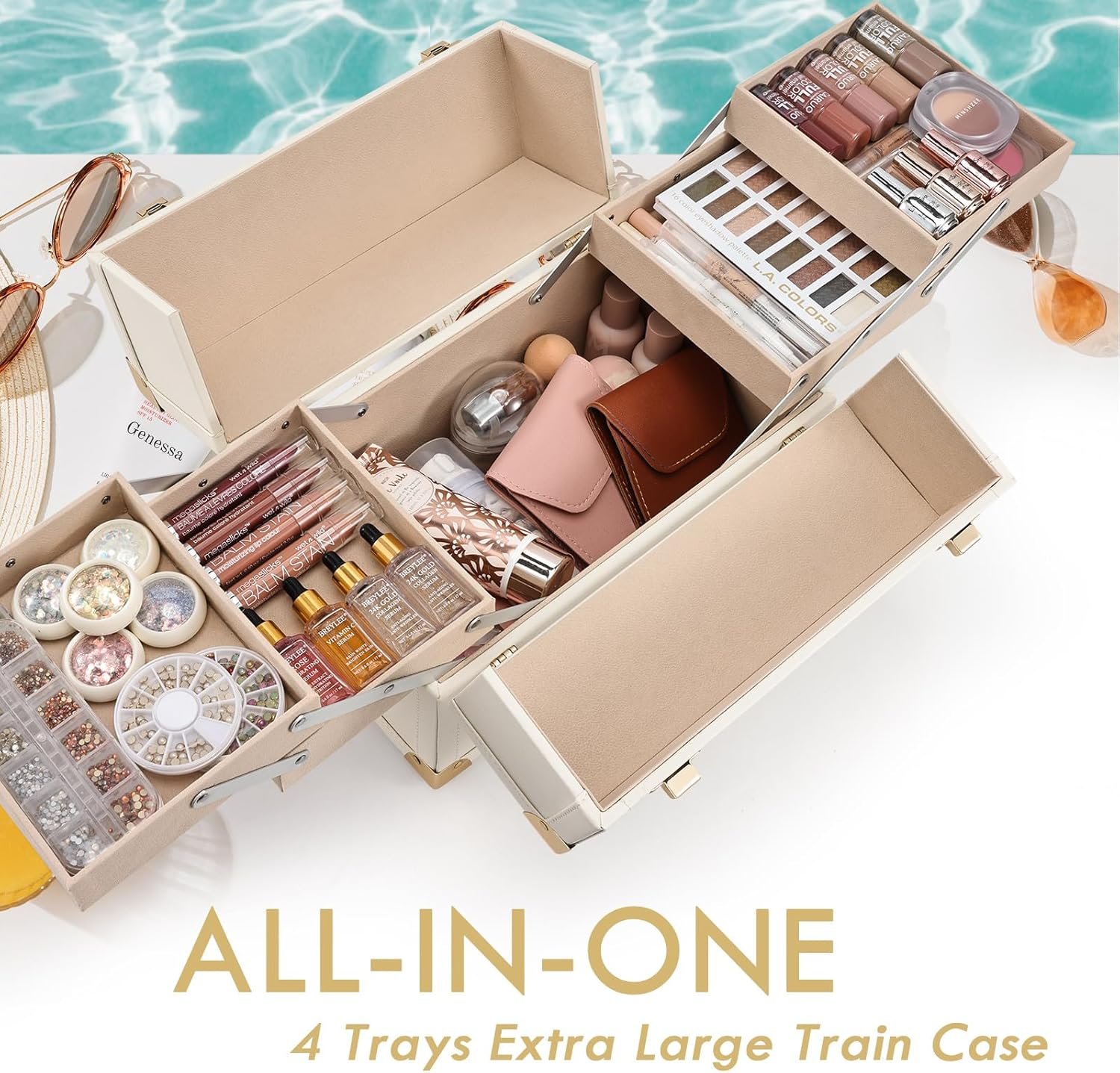 Spacious Storage Space: With its spacious compartments and multiple tray compartments, this makeup case offers efficient storage for your beauty essentials. It allows you to neatly organize and protect your items, including fragile items like perfumes or jewelry.
