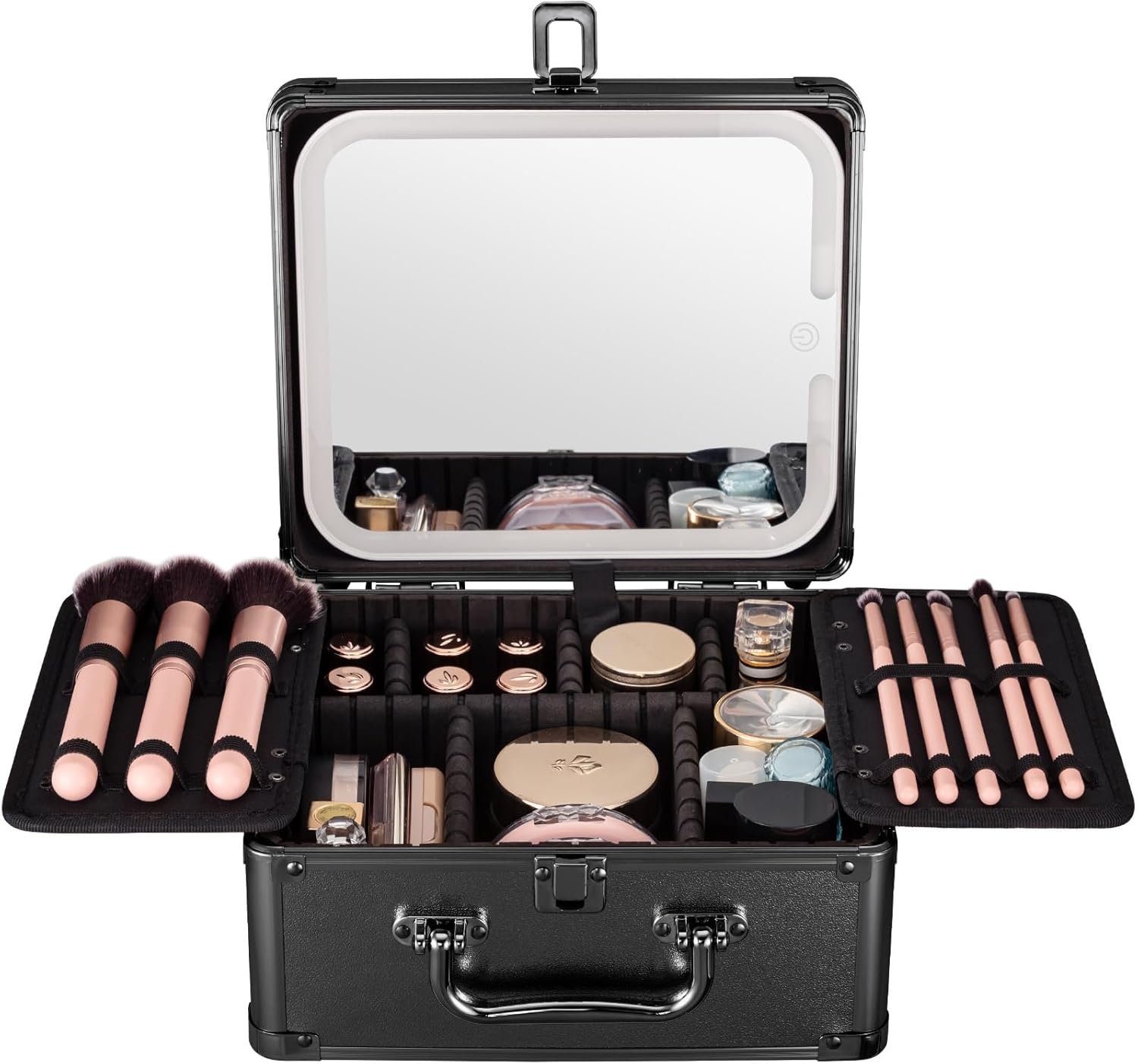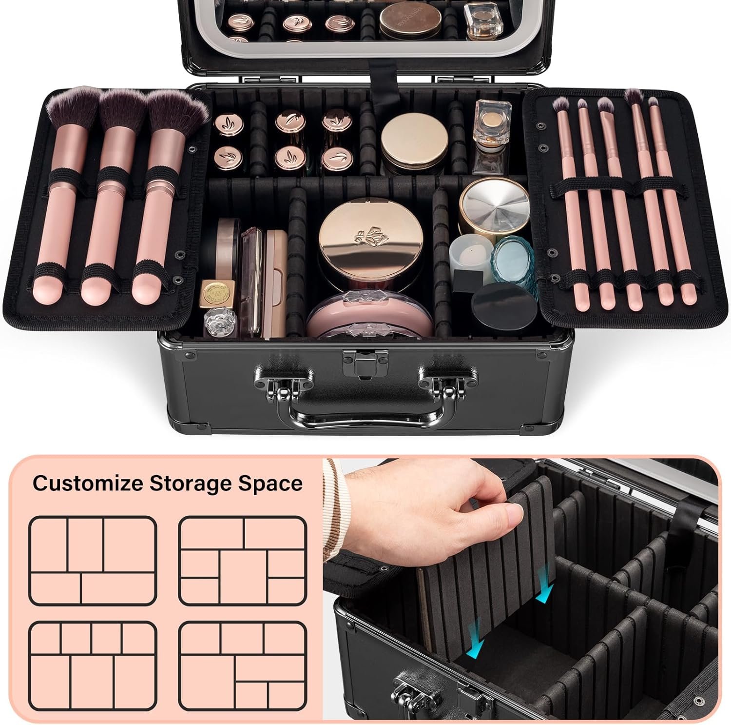 【Professional Hard Makeup Travel Case】– The outer surface of the makeup box is made of high-quality metal and waterproof material, effectively protecting the contents from moisture and stains, keeping everything dry and clean. The four corners are reinforced with anti-collision padding to prevent damage from external impacts, greatly enhancing the box’s durability. Even with daily use, it can withstand bumps or scratches without showing signs of wear. This hard shell vanity case is your peace of mind.