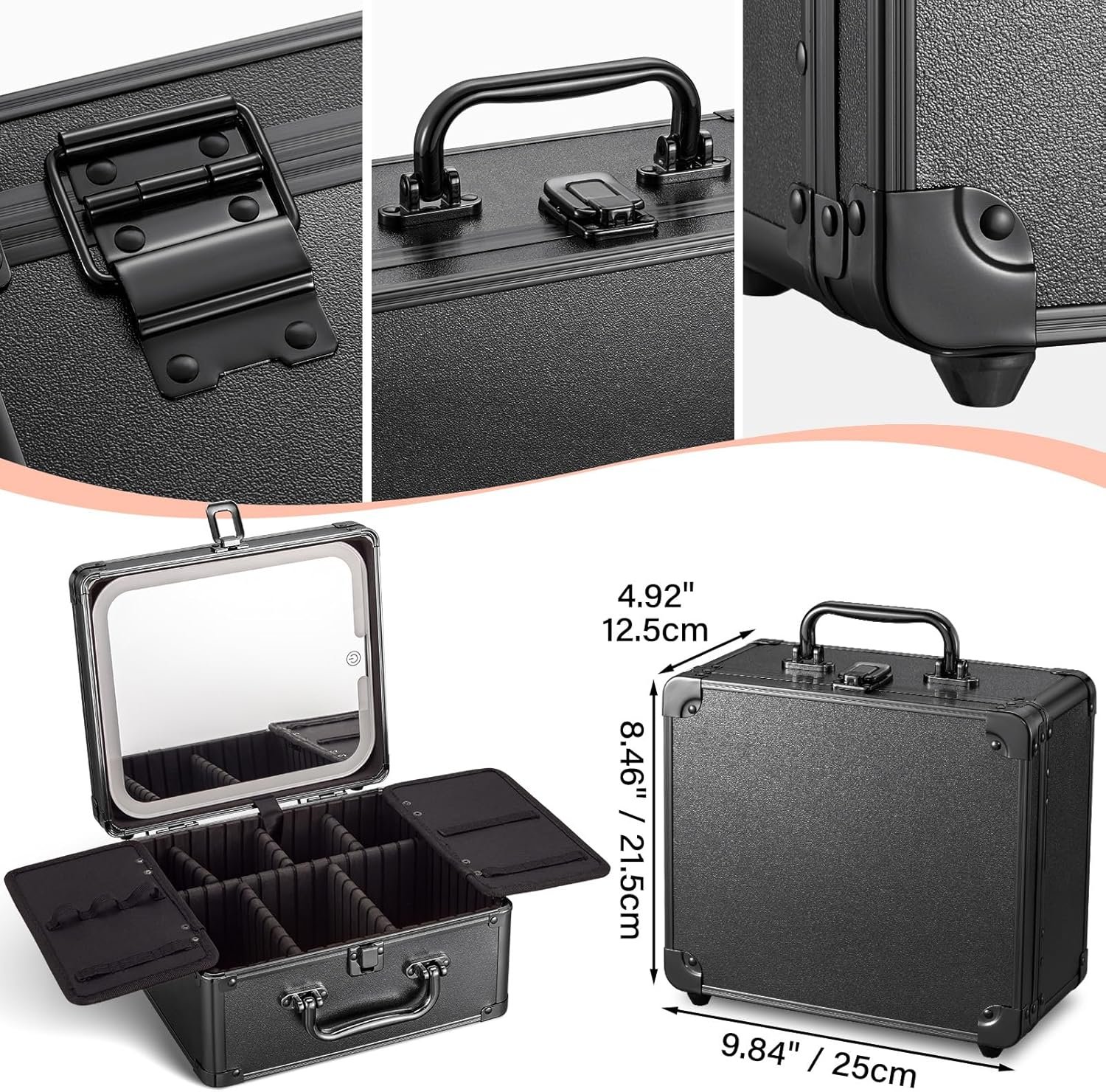 【Portable Travel Makeup Bag】– It is not only offers powerful storage capacity but also focuses on portability and comfort. With a comfortable handle design, it’s easy to carry and convenient to take anywhere. Whether for everyday use at home or for travel, it becomes an essential companion. Its compact size (9.84″ x 8.46″ x 4.92″ / 25 x 21.5 x 12.5cm) ensures that it doesn’t take up too much space. Whether storing makeup, nail tools, or other beauty items, you’ll find the perfect spot for each