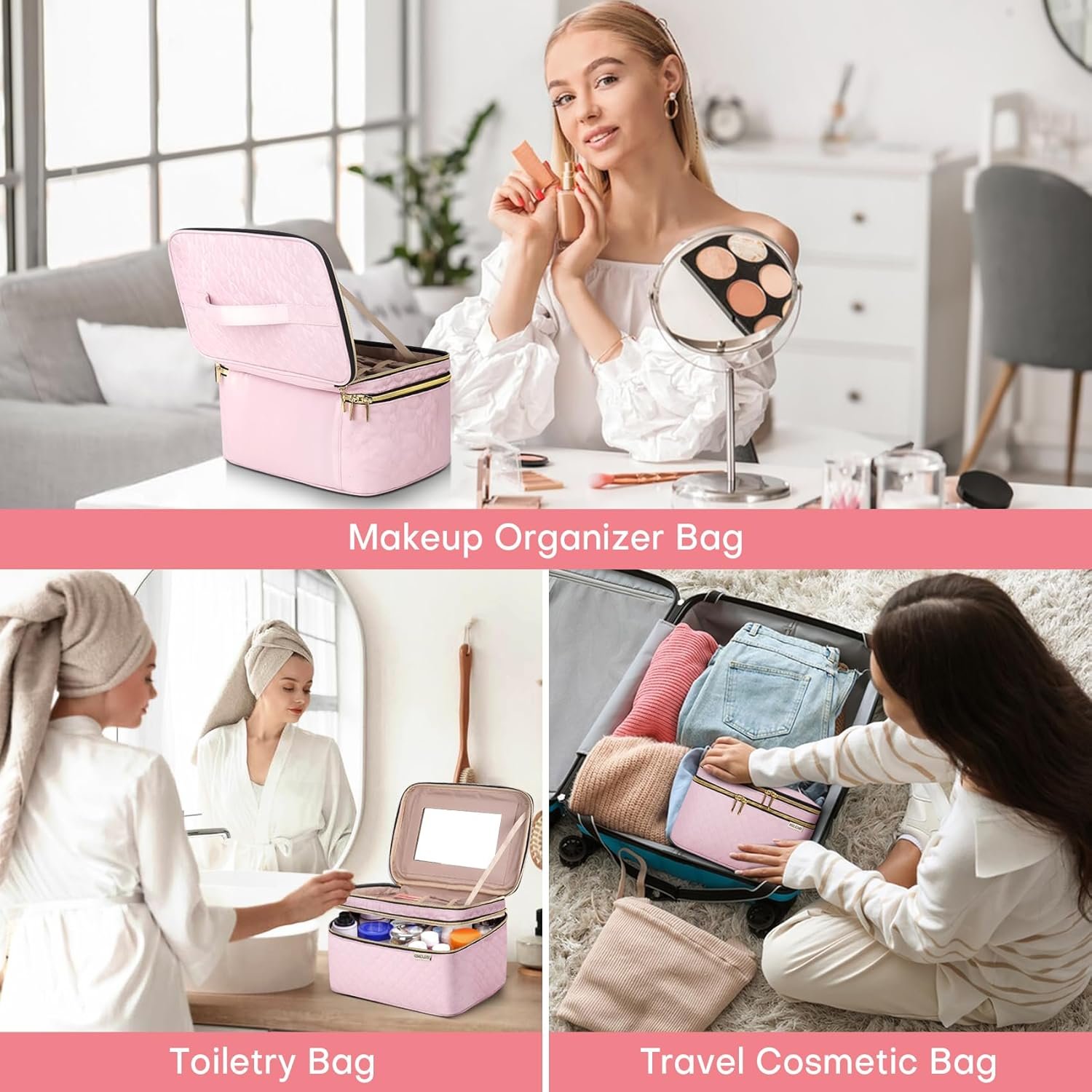 Travel Must Haves & Cute Gift – Each of these large makeup organizer bag has smooth two-way zippers allow easy access. Great traveling accessories and great gifts for women