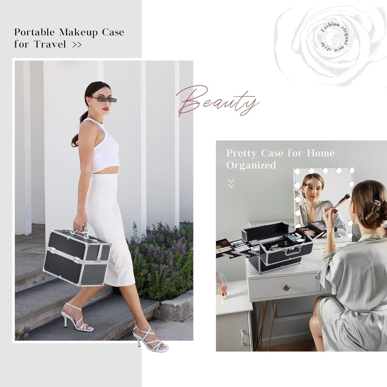 【Travel Case with 6 Tray】: The cantilever structure expands smoothly, does not slide out when not in use, and is firmly connected. The 6-tier tray helps you organize makeup tools, lipstick collections, palettes, and makeup brushes.