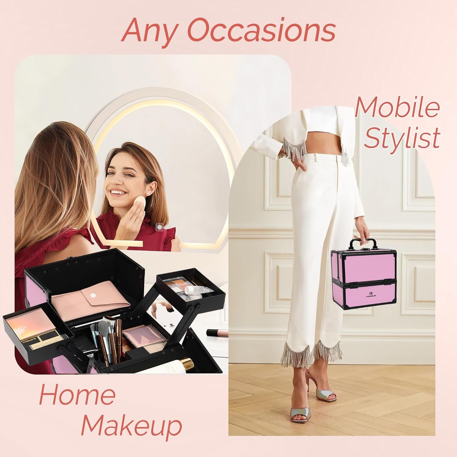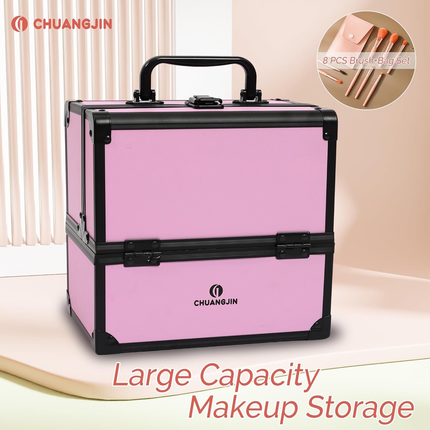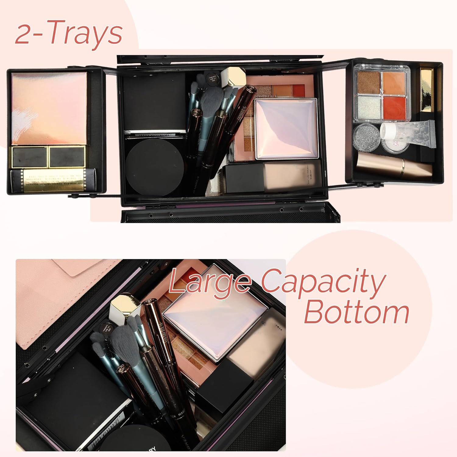 🎀 LARGE CAPACITY – Our makeup box with 2 trays is 8.62 x 5.86 x 8.18 inches. The spacious bottom of the makeup case easily accommodates a variety of makeup essentials, and the retractable cantilevered trays provides even more flexibility for additional storage.