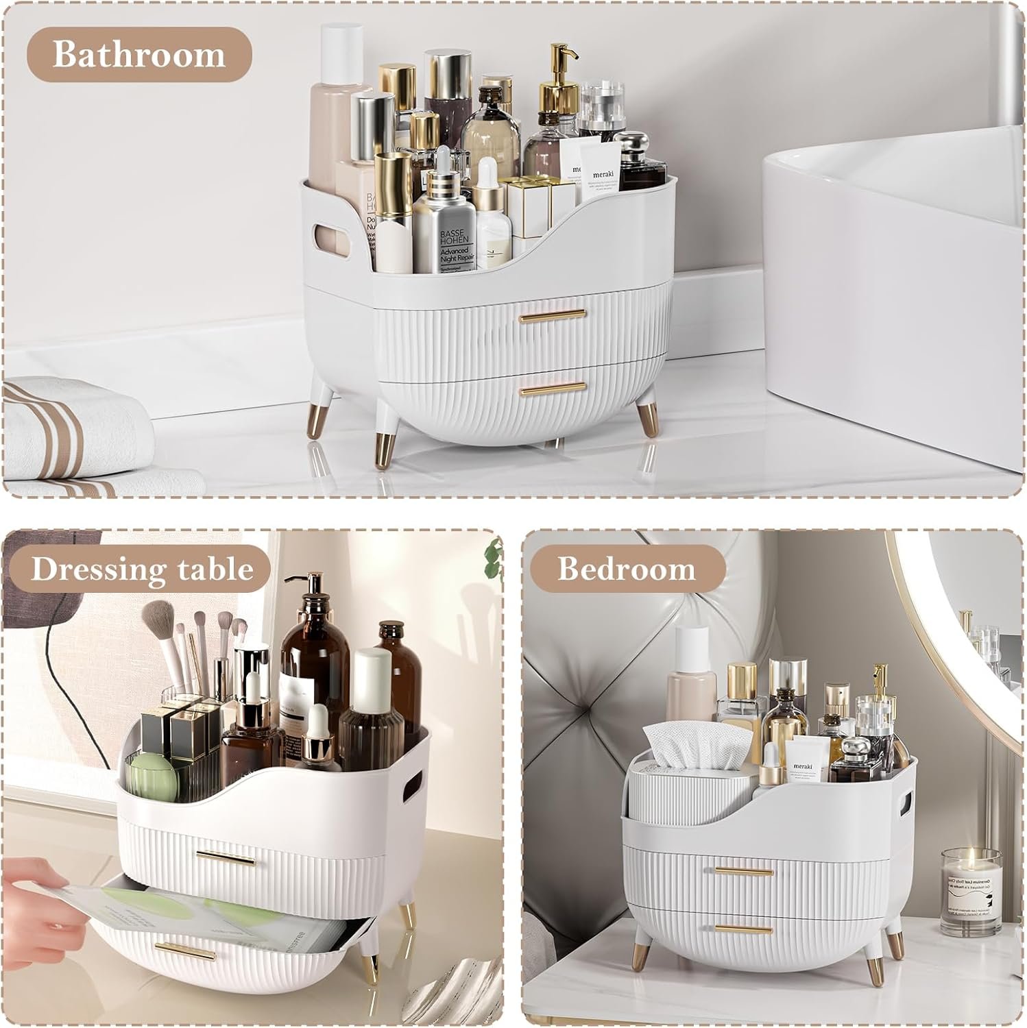 ✨ Elegant Modern Style: The rounded appearance design and delicate golden drawer handle with non-slip feet make the cosmetics organizer unique and elegant, bringing you an elegant home.