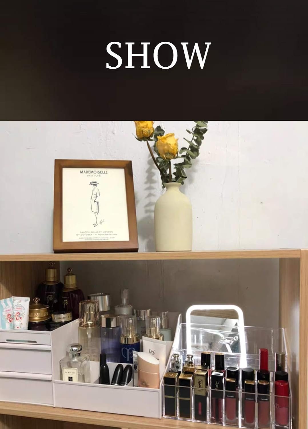 【Drawer Handle & High-end Texture】— Cosmetic Storage Box adopt high grade mould, receive box smooth without burr, firm and durable and convenient for beautiful and convenient.Makeup shelf help find cosmetics and Hair accessories easily.