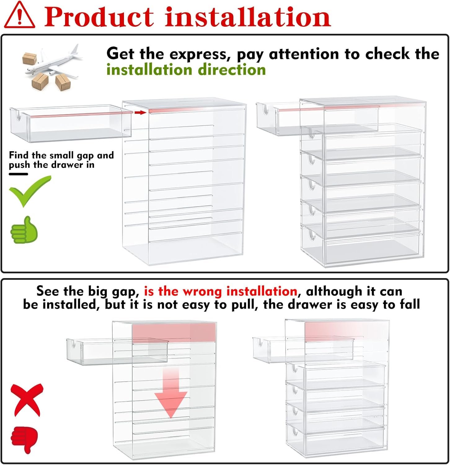 High-quality Acrylic, Dustproof – This clear drawer storage is dust proof and waterproof, and can protect the items we put away from dust and water. In addition, the desk organizer is made from shatterproof plastic. The sturdy, transparent and fashionable design is compatible with decoration of any rooms. PLEASE DO NOT PUT IN DISHWASHER. Easily clean with soap and warm water.