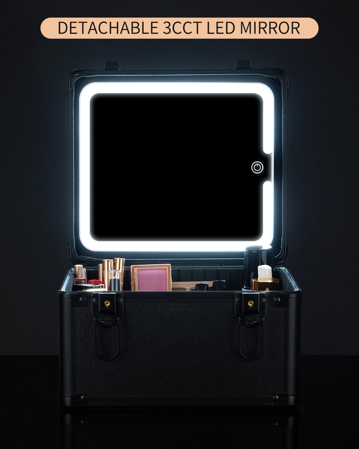 PROFESSIONAL MAKEUP CASE: The switch on the makeup case with lighted mirror allows adjustment between 3 color temperatures and offers stepless brightness control (0-100%)