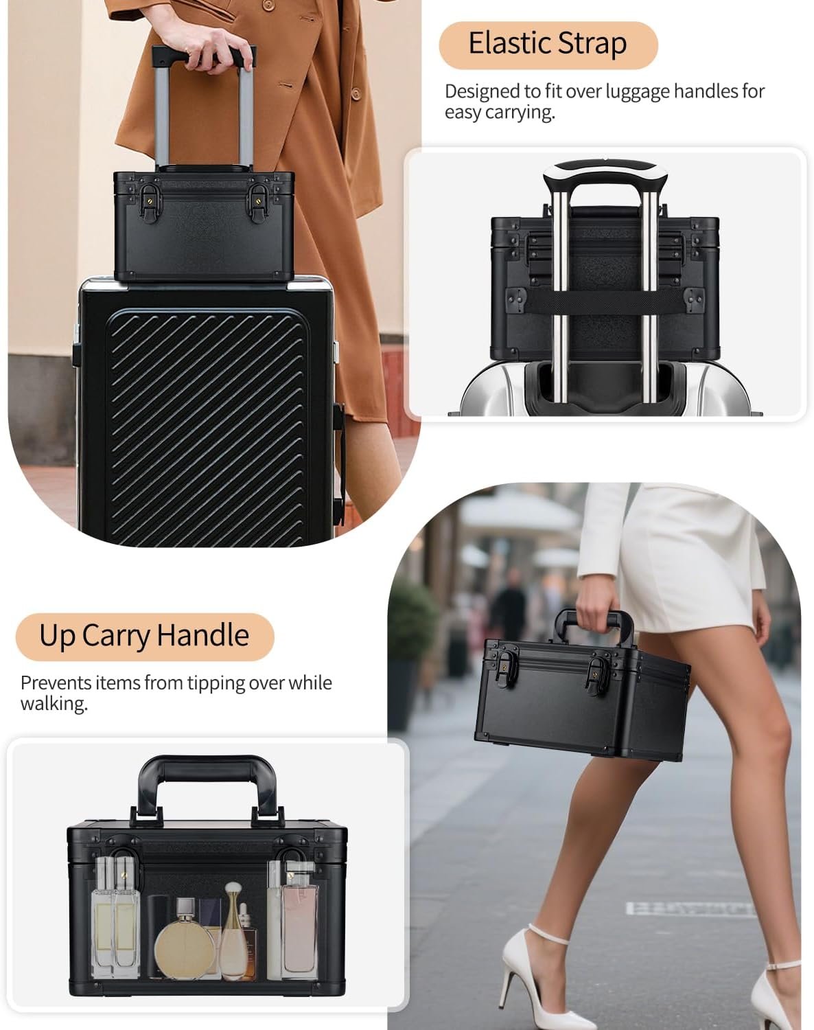 COSMETIC BAGS FOR WOMEN: Includes an additional makeup brush pouch and storage bag. The elastic strap attaches to luggage handles, making it ideal for travel while saving suitcase space.