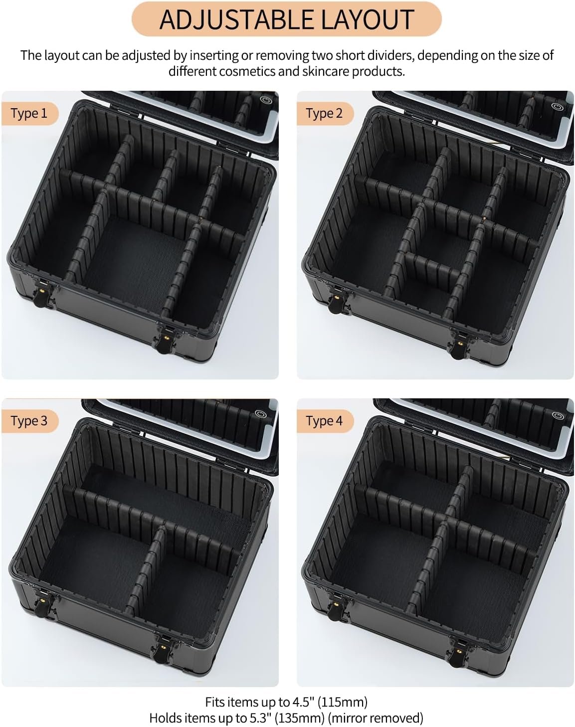 SPACIOUS & LARGE CAPACITY: Holds products up to 5 inches tall. Perfectly organizes makeup and accessories like lipsticks, lip gloss, brushes, eyeshadow, palettes, hair brushes, skincare items, nail polish, manicure tools, shampoo, and more