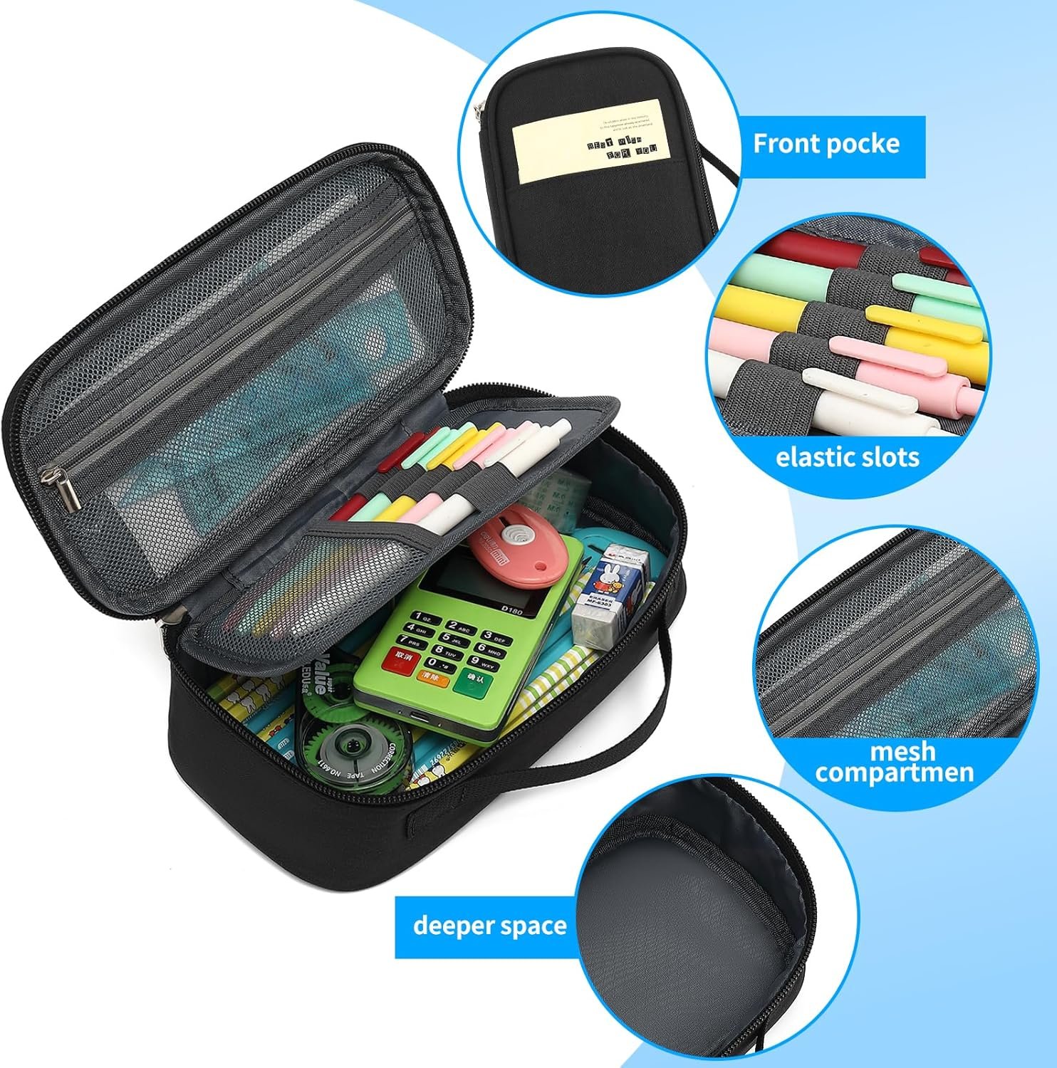 【Multi-purpose】This pencil case is not only an ideal pencil case organizer for office supplies and supplies, it can also be used as a travel case, makeup bag, tool bag, cell phone bag, etc. It meets all your basic daily needs. Suitable for office, home and travel use.