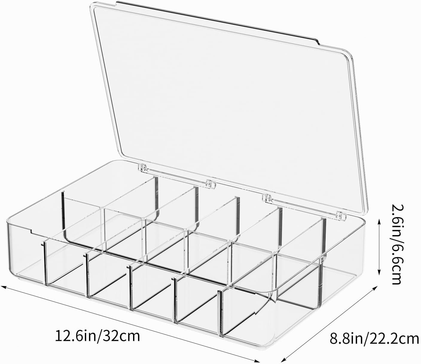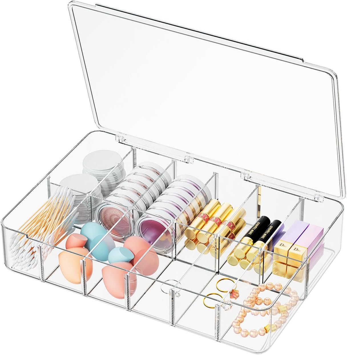 Spacious 12 Compartments: This makeup organizer with 12 compartments offers ample space to neatly store and display your cosmetics, jewelry, nail polish, and more