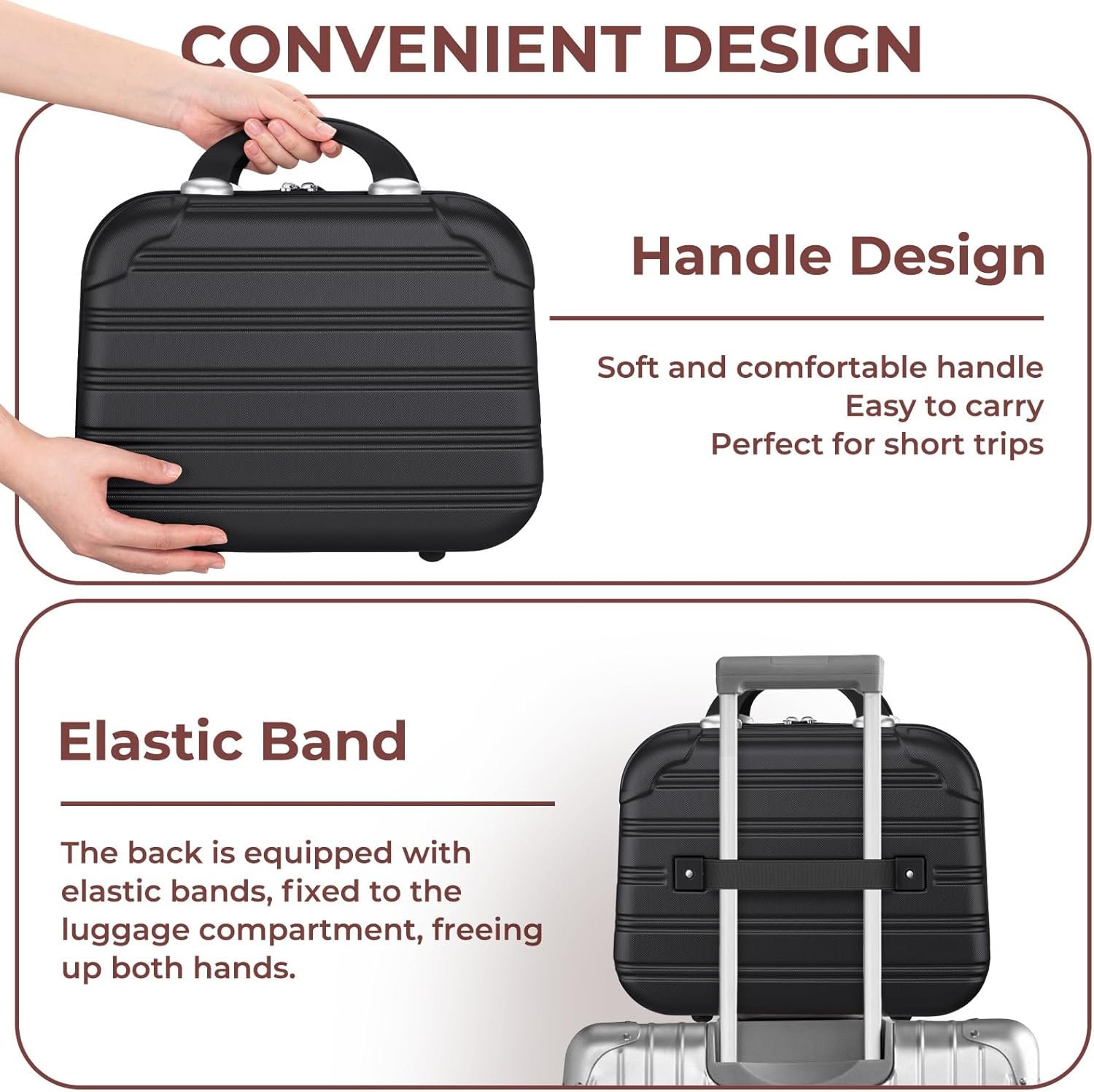 【Ultra-Portable Mini Makeup Case】– Measuring 13.4 x 5.9 x 10.2 inches (34 x 15 x 26 cm), this hard-shell 14-inch mini makeup suitcase features a lightweight yet durable design. Effortlessly fits into suitcases, backpacks, or carry-ons. Soft handle and elastic luggage strap on the back offers dual carrying options for portable travel, you can choose to the way as you prefer. Perfect cosmetic travel case for on-the-go organization