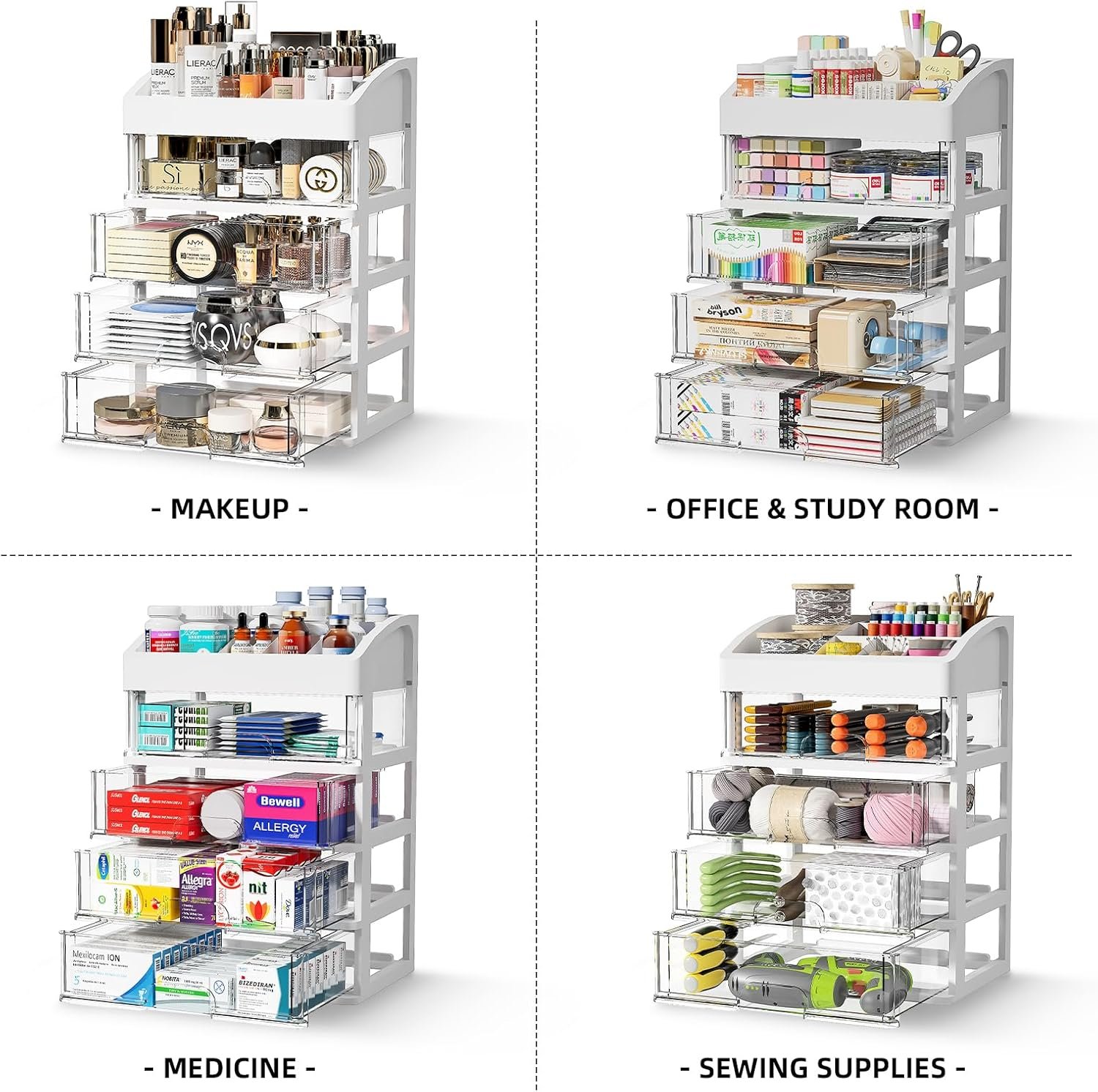 MAXIMIZE YOUR DESK SPACE: This desk organizer with drawers is perfect for students, office workers, and women who need to optimize their workspace, stay organized and improve productivity with the versatile 4 drawer storage organizer, keep your desk tidy and your items within easy reach with this desktop organizer with drawers.